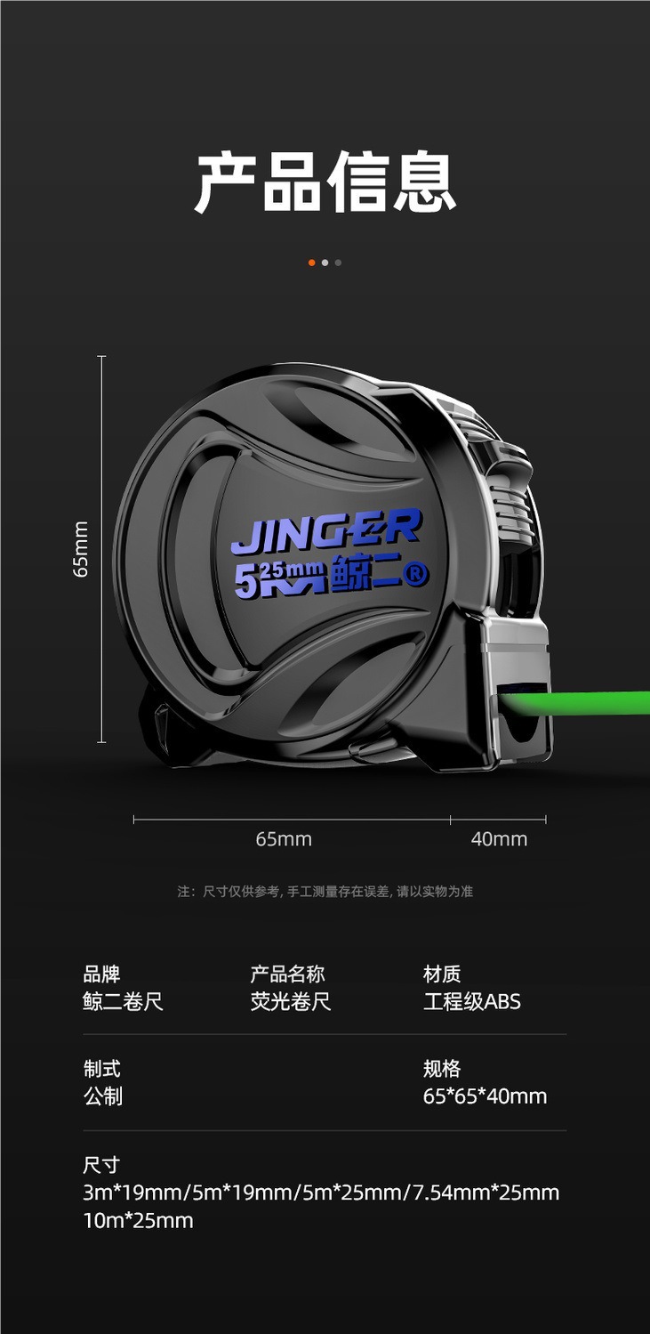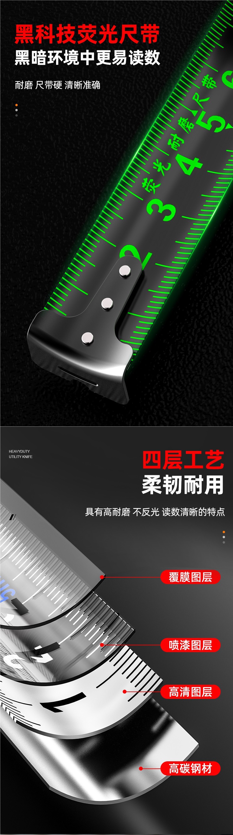 고정밀 블랙 기술 미터 내마모성 형광 미터 통치자 상자 통치자 테이프 측정 수입 미터 통치자 확대 및 두껍게스토어 가기