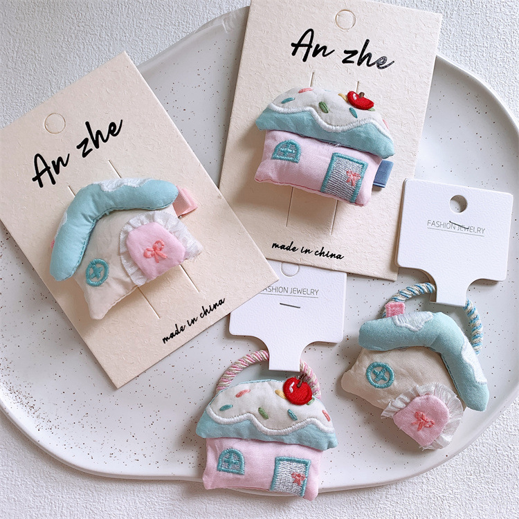 새로운 어린이 귀여운 작은 집 헤어핀 헤어 밴드 소녀 사이드 브로큰 헤어 뱅 클립 페이온 고무 텐돈 헤드 라인스토어 가기