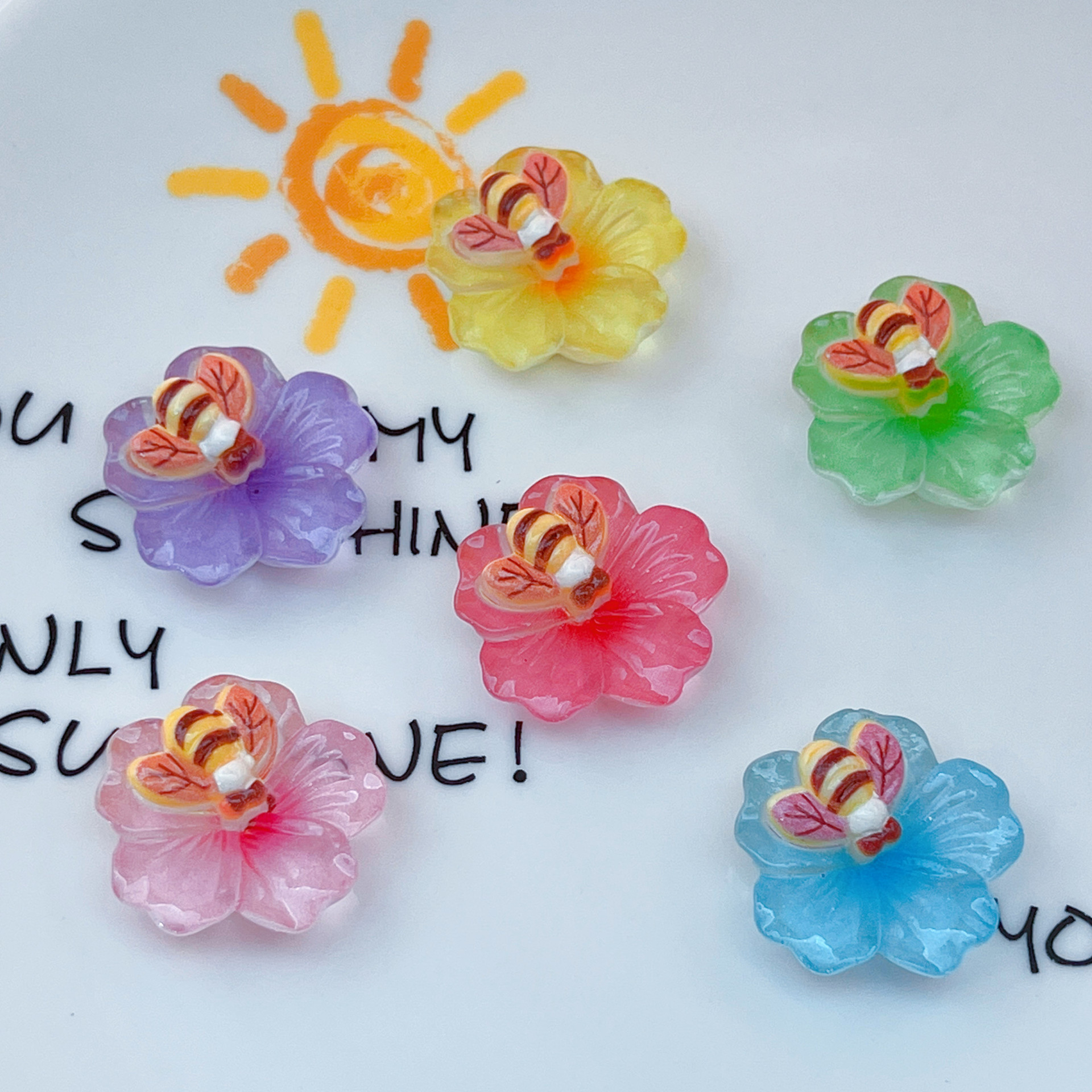 투명 얼음 꿀벌 다섯 꽃잎 꽃 머리핀 헤어 로프 크림 접착제 DIY 신발 버클 냉장고 자석 수지 액세서리