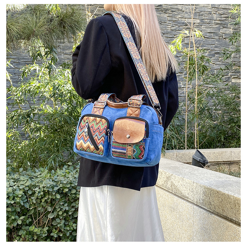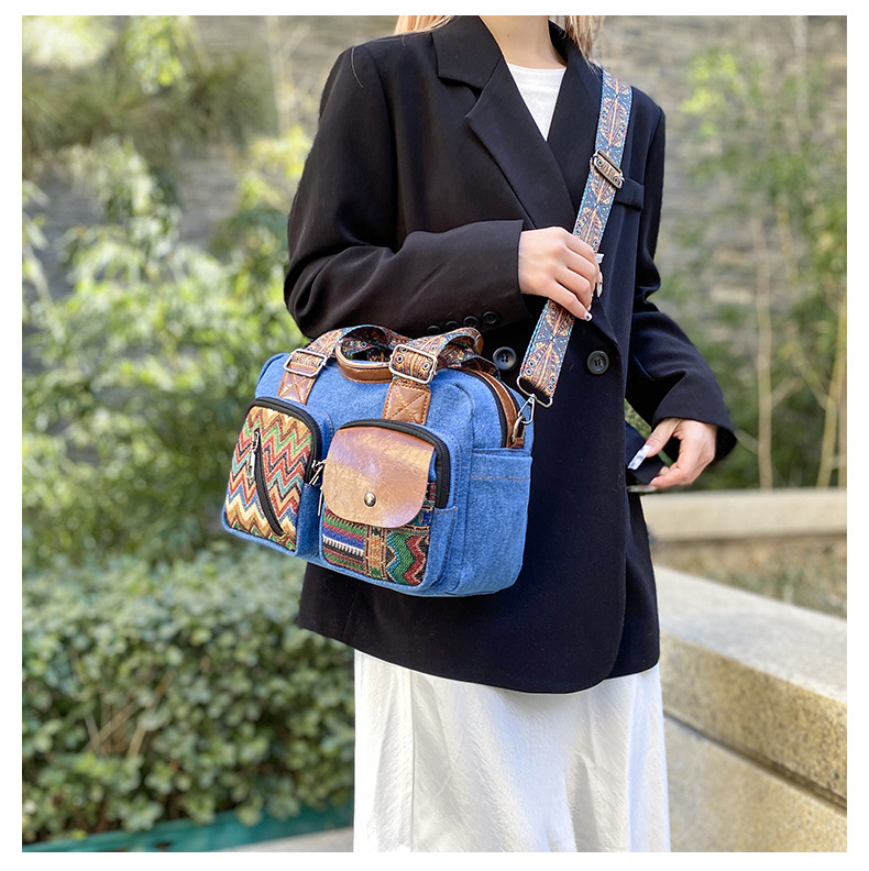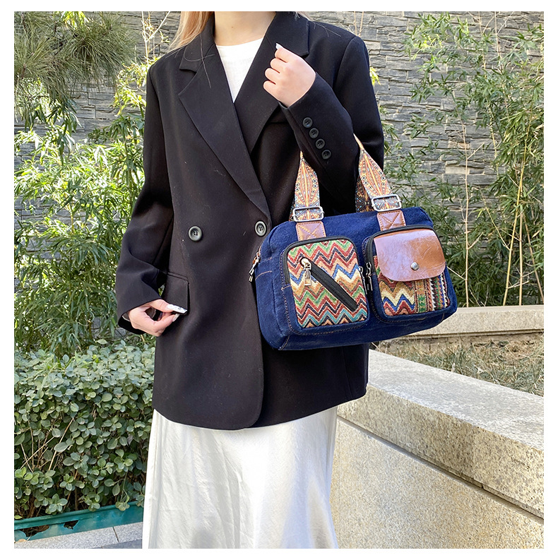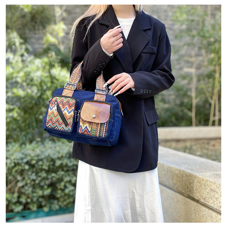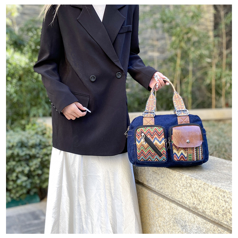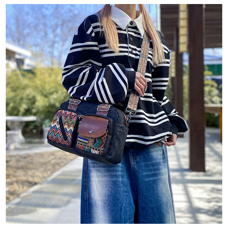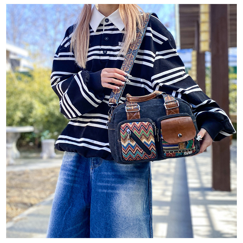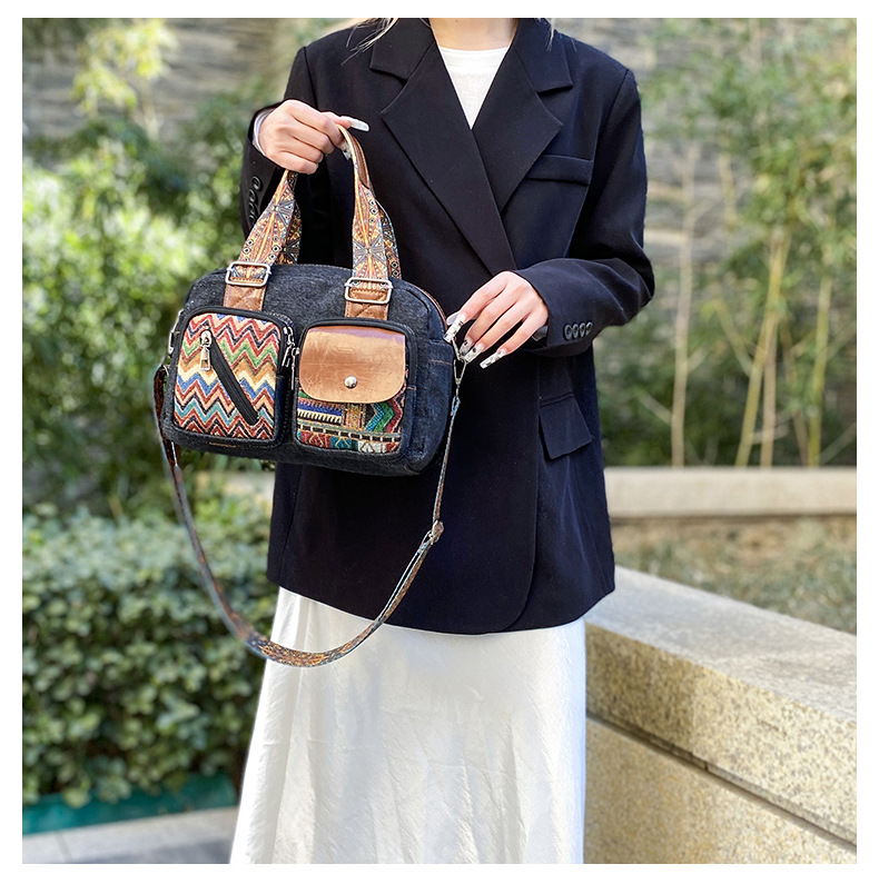 국경 간 새로운 캔버스 가방 여성 크로스 바디 가방 중국 스타일 민족 스타일 스트라이프 숄더 백 휴대 전화 동전 배낭 도매