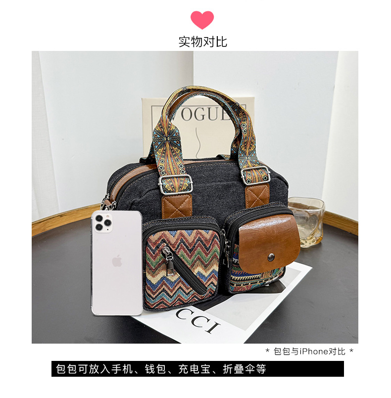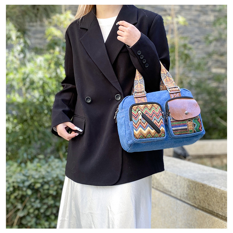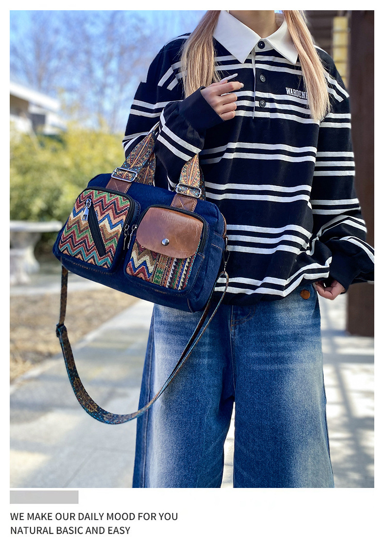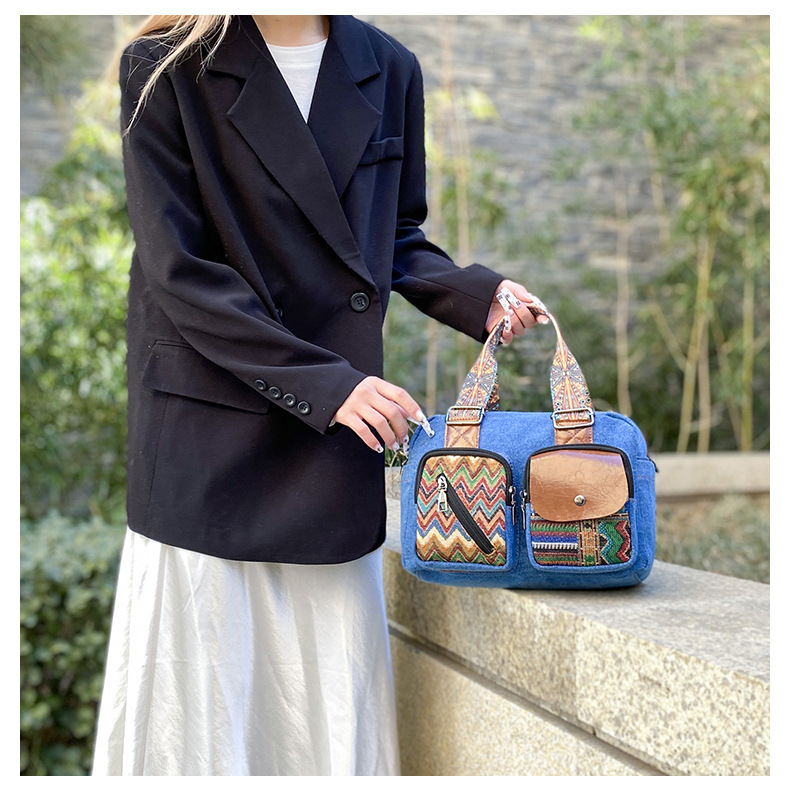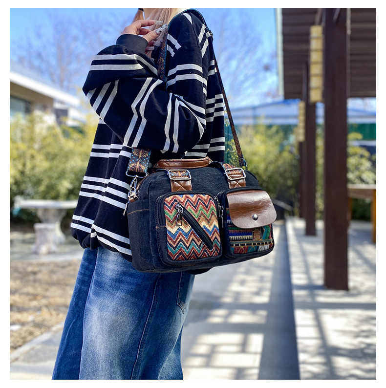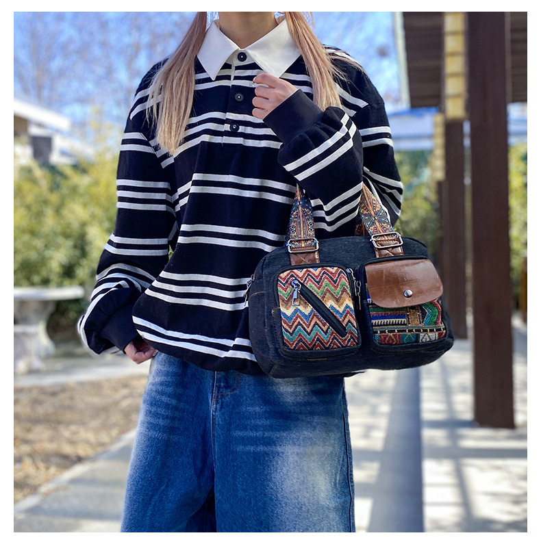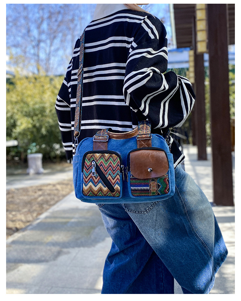 국경 간 새로운 캔버스 가방 여성 크로스 바디 가방 중국 스타일 민족 스타일 스트라이프 숄더 백 휴대 전화 동전 배낭 도매