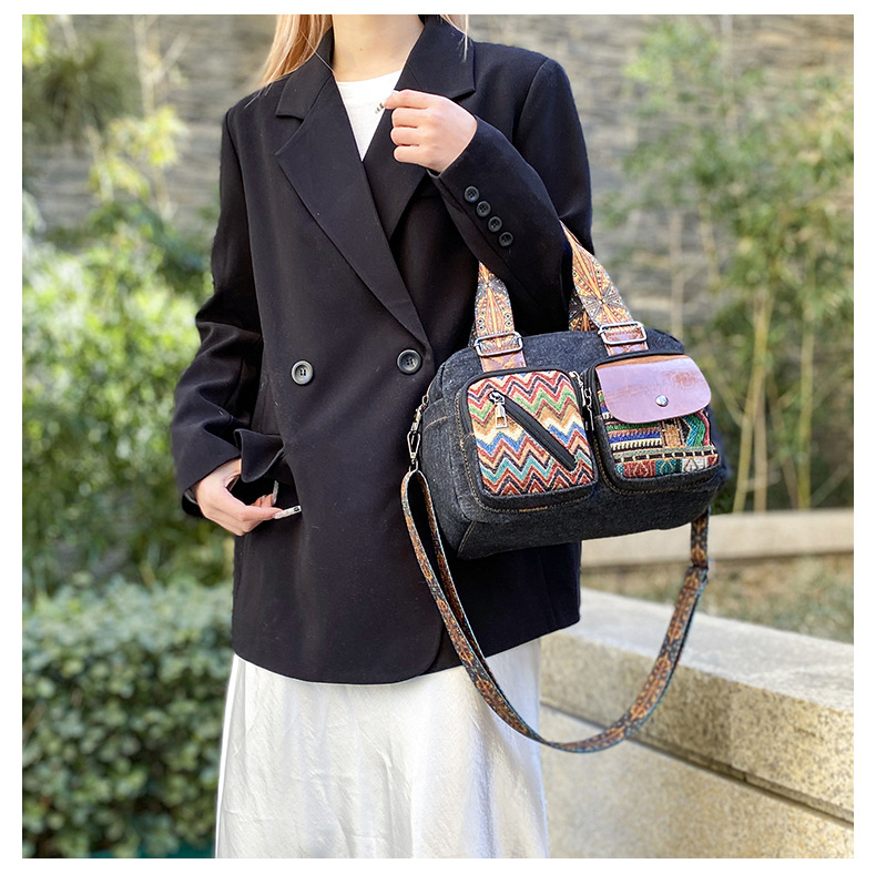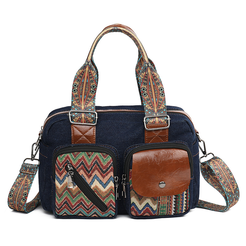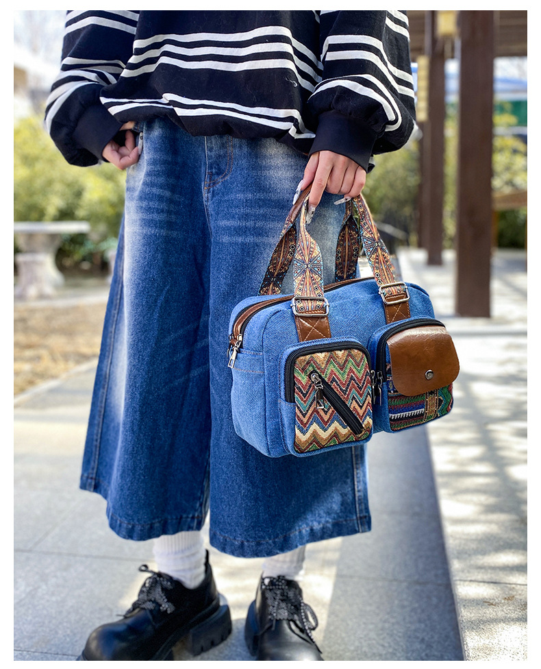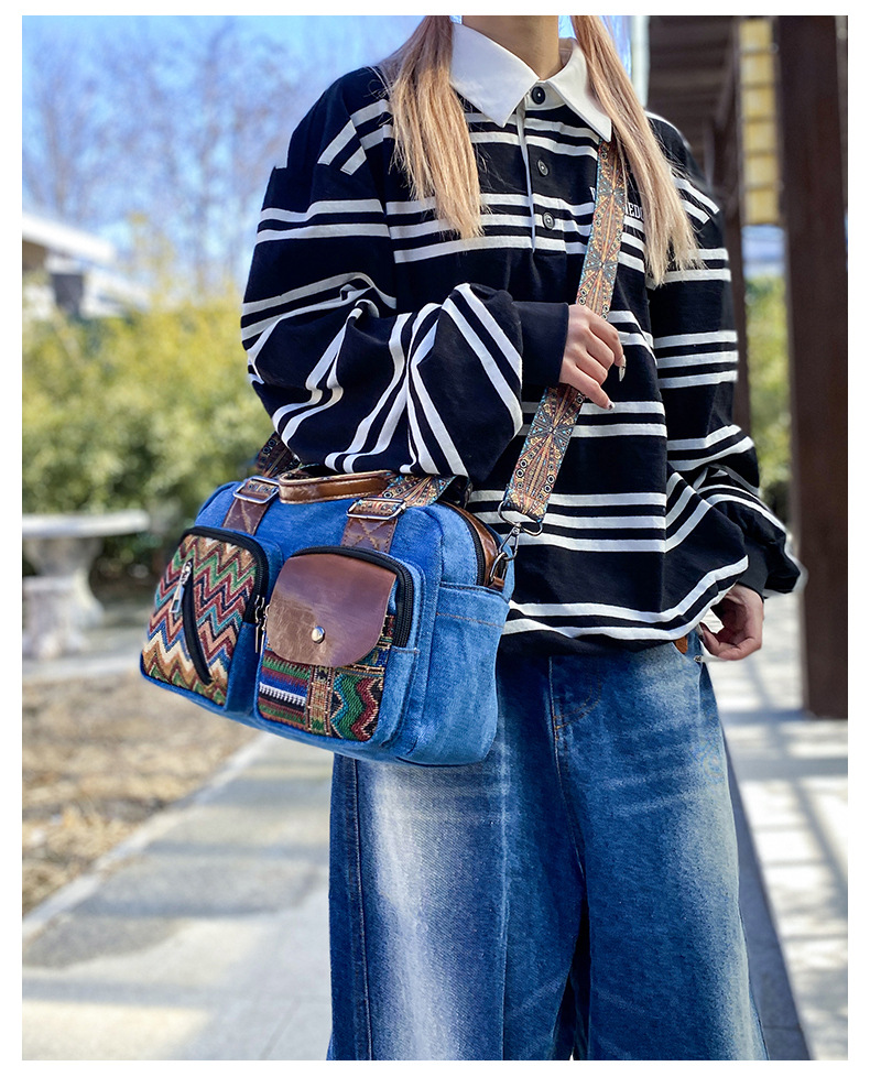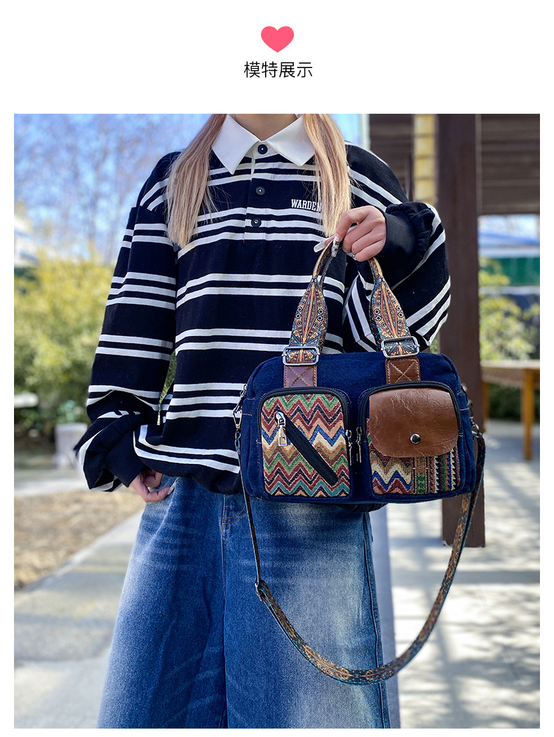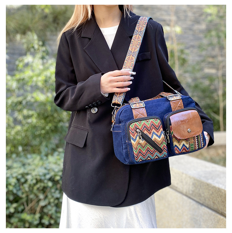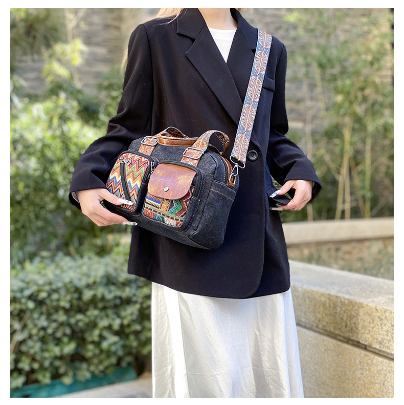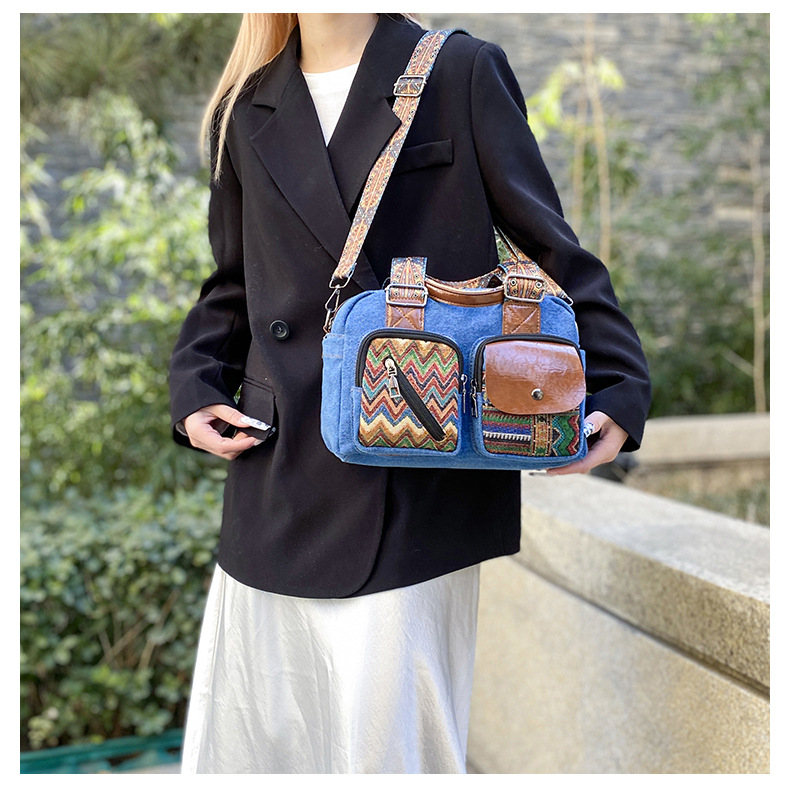 국경 간 새로운 캔버스 가방 여성 크로스 바디 가방 중국 스타일 민족 스타일 스트라이프 숄더 백 휴대 전화 동전 배낭 도매