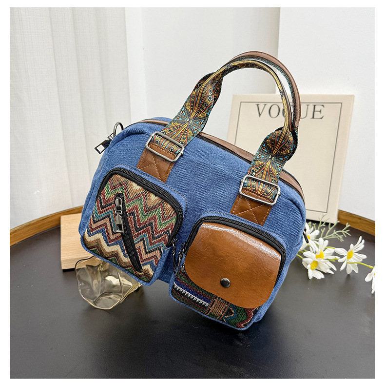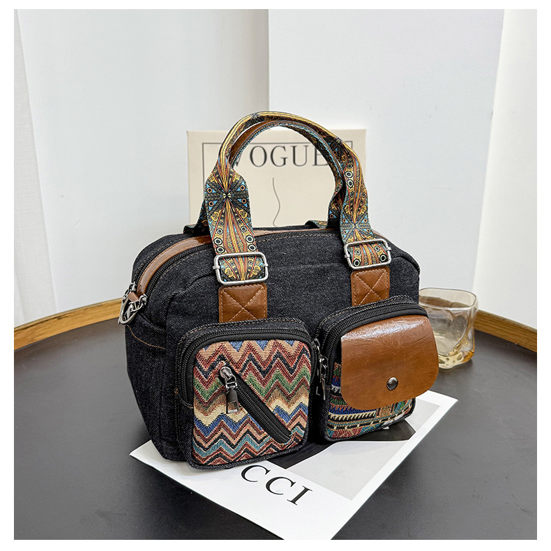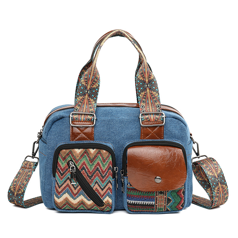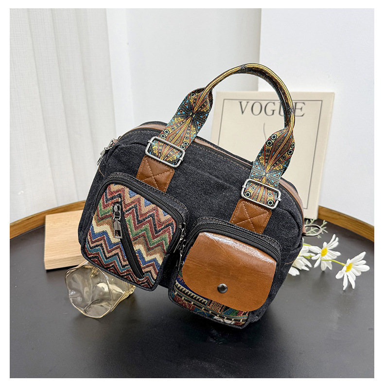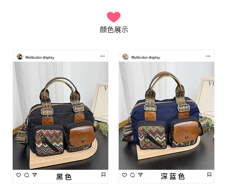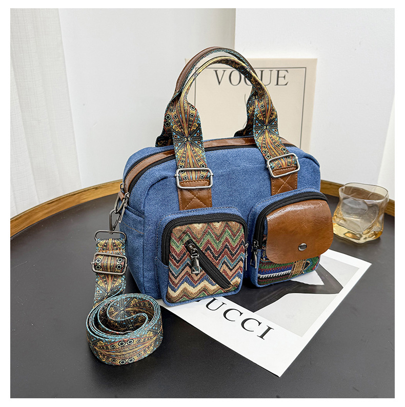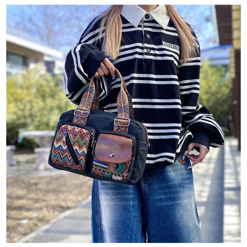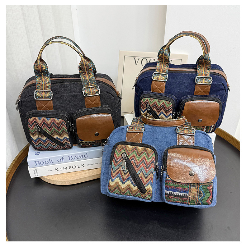 국경 간 새로운 캔버스 가방 여성 크로스 바디 가방 중국 스타일 민족 스타일 스트라이프 숄더 백 휴대 전화 동전 배낭 도매