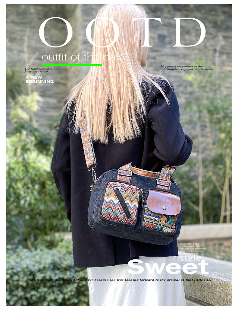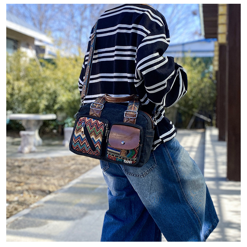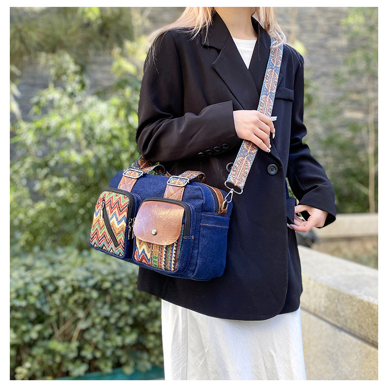 국경 간 새로운 캔버스 가방 여성 크로스 바디 가방 중국 스타일 민족 스타일 스트라이프 숄더 백 휴대 전화 동전 배낭 도매스토어 가기