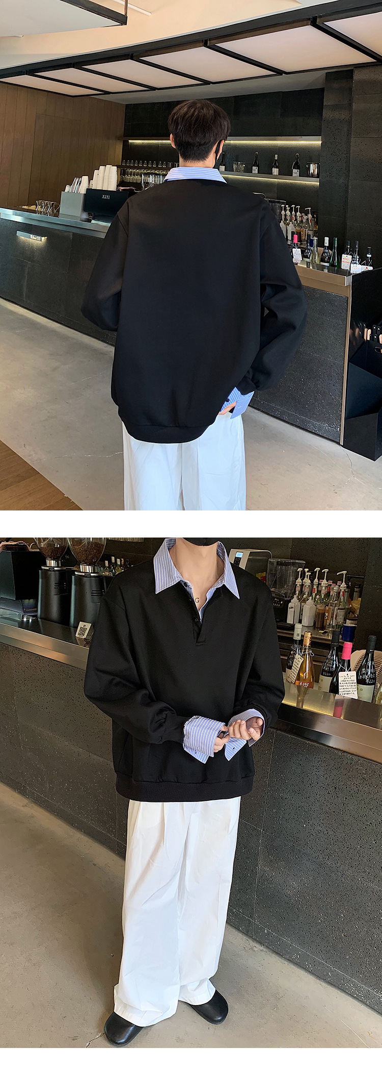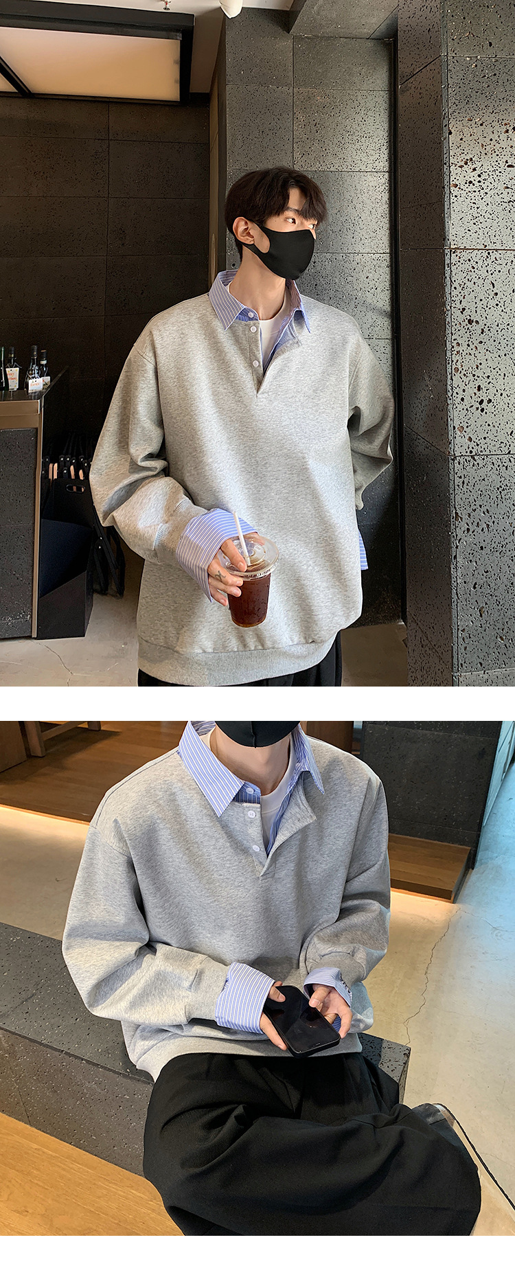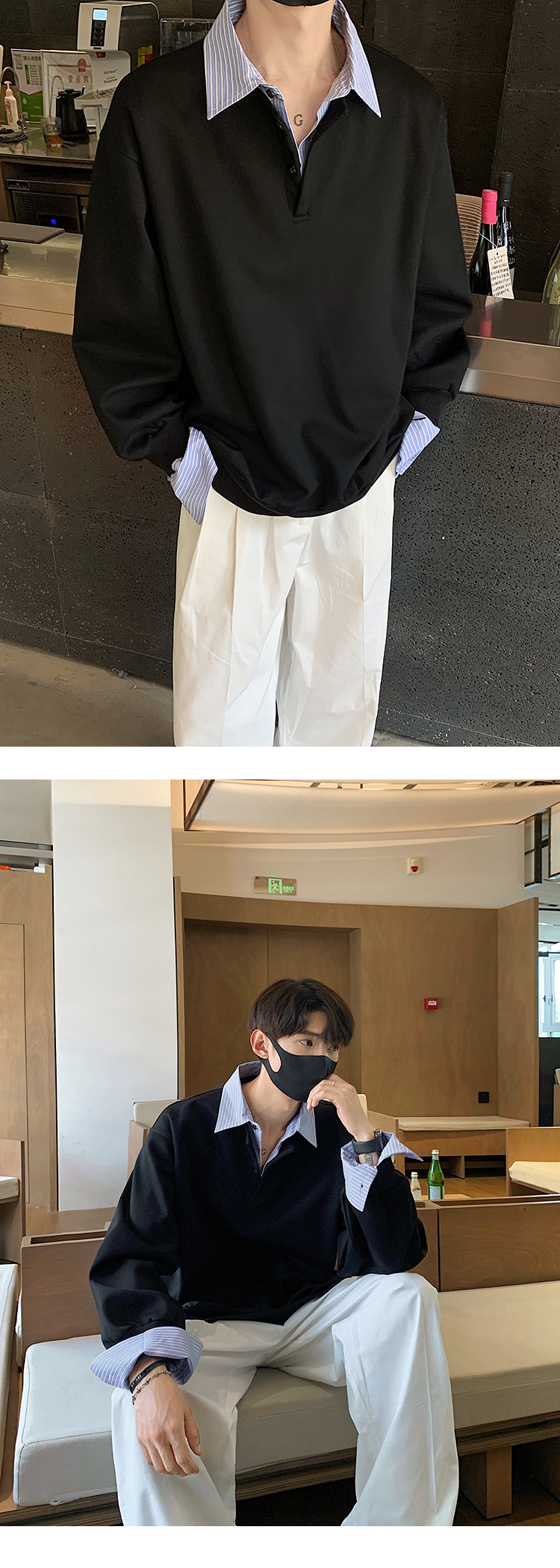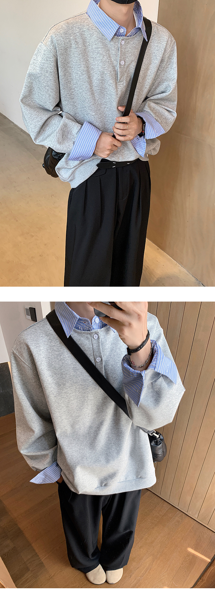 가짜 투피스 셔츠 남성 가을 2025 새로운 스타일 이너 레이어드 긴팔 라펠 헨리 보텀 셔츠 셔츠 재킷스토어 가기