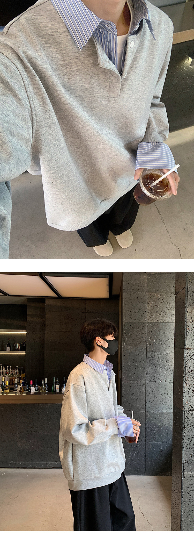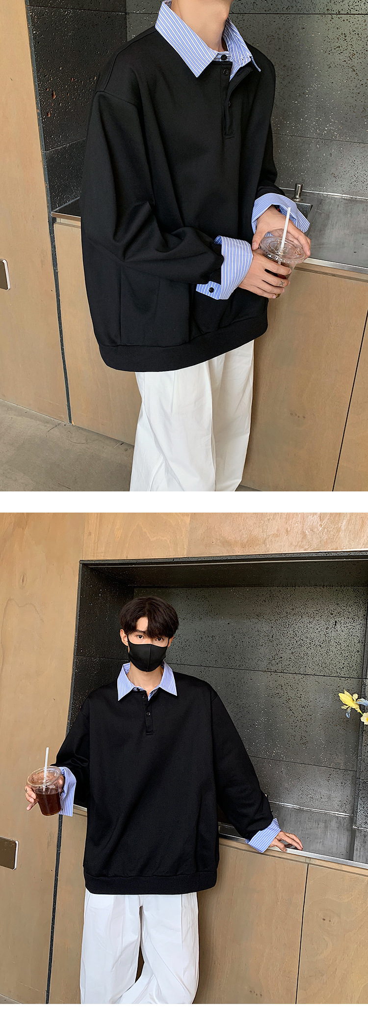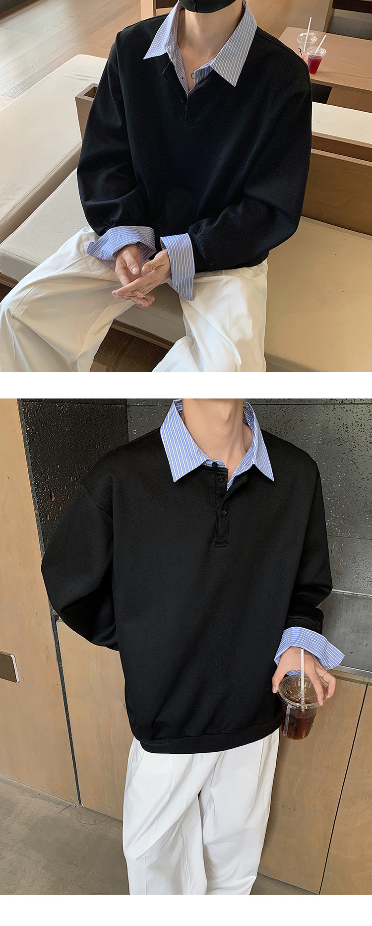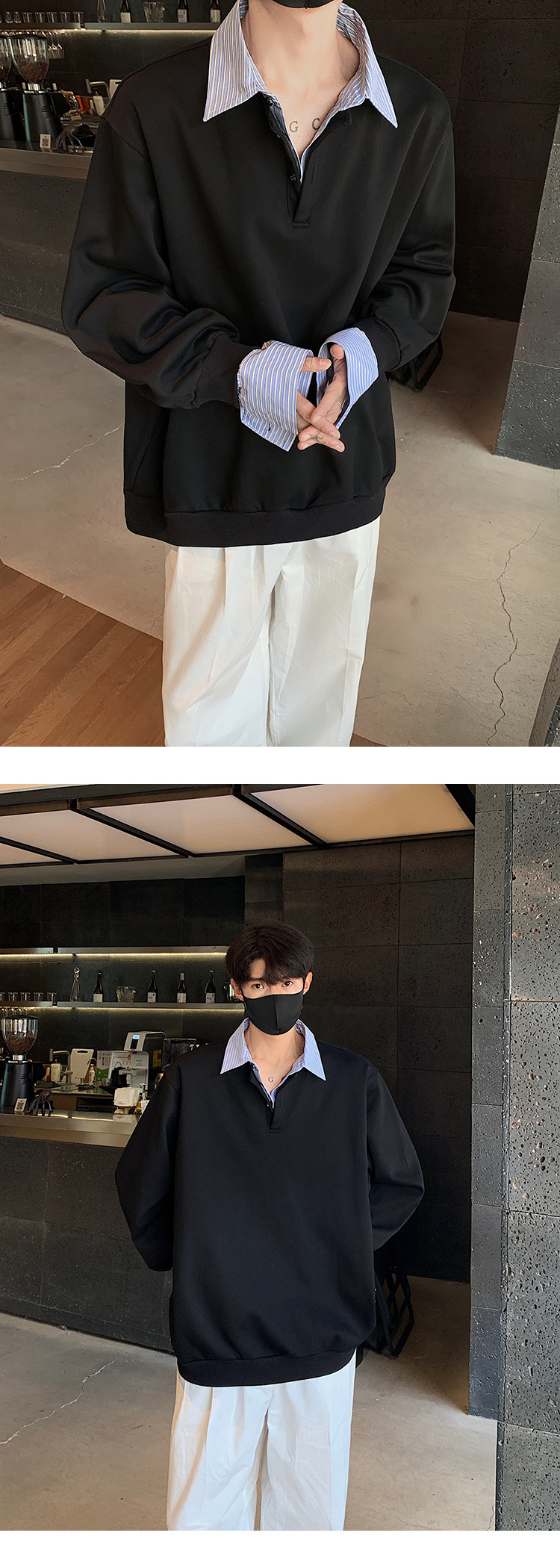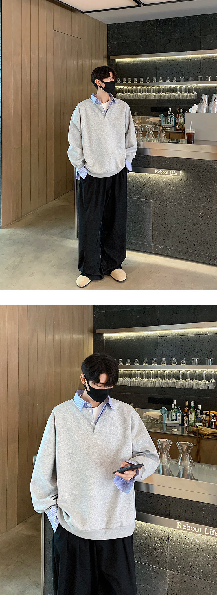 가짜 투피스 셔츠 남성 가을 2025 새로운 스타일 이너 레이어드 긴팔 라펠 헨리 보텀 셔츠 셔츠 재킷스토어 가기