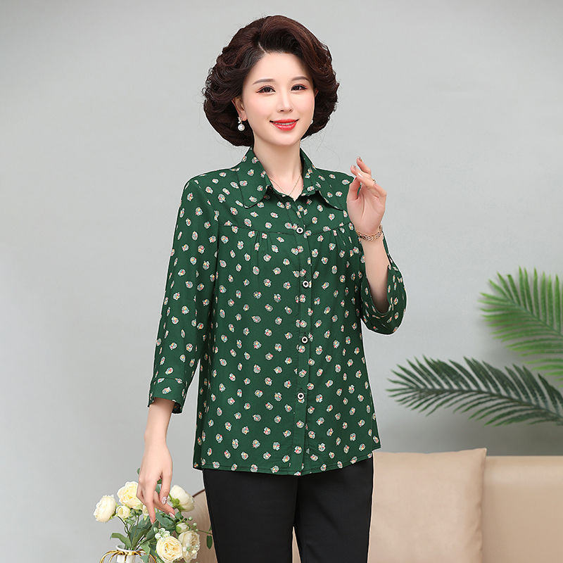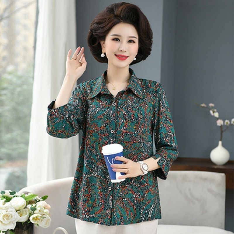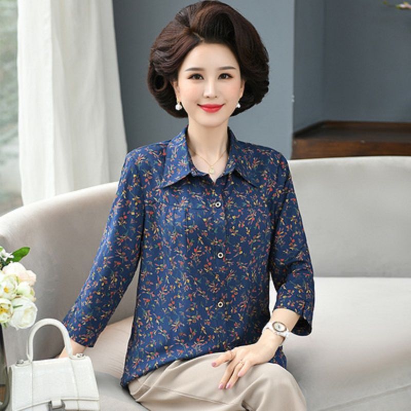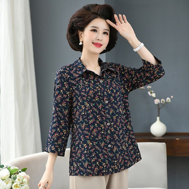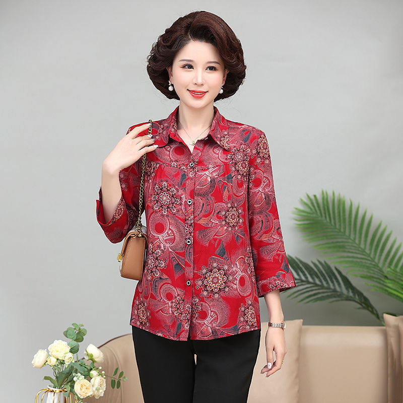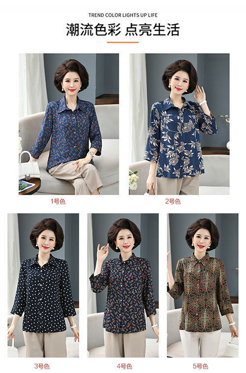 중년 및 노인 여성면 실크 셔츠 컬러 어머니의 봄과 여름 셔츠 할머니의 느슨한 카디건 플러스 대형스토어 가기