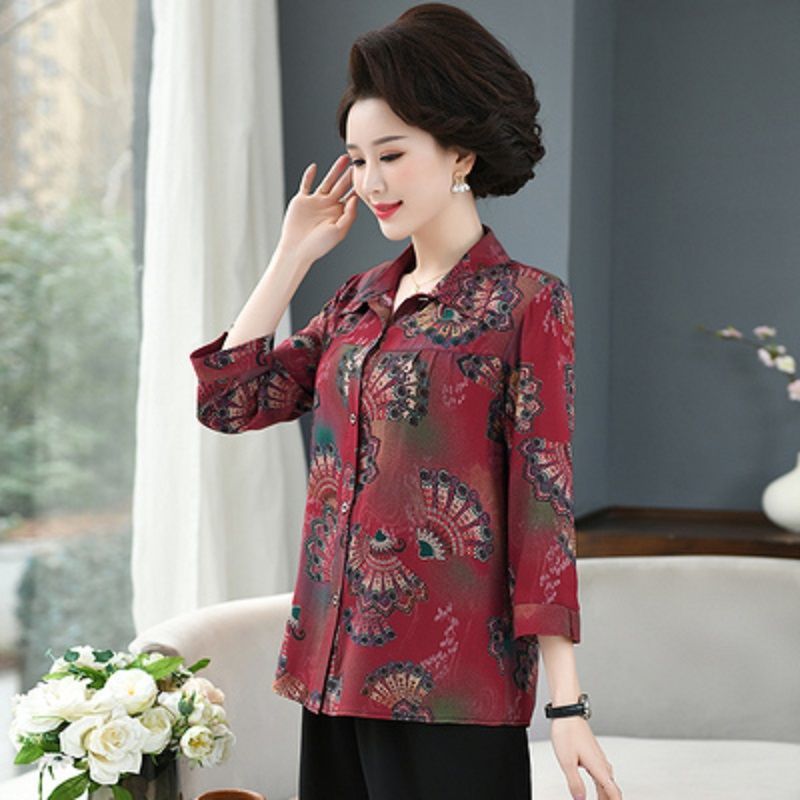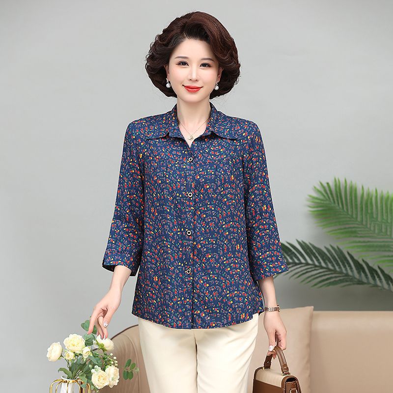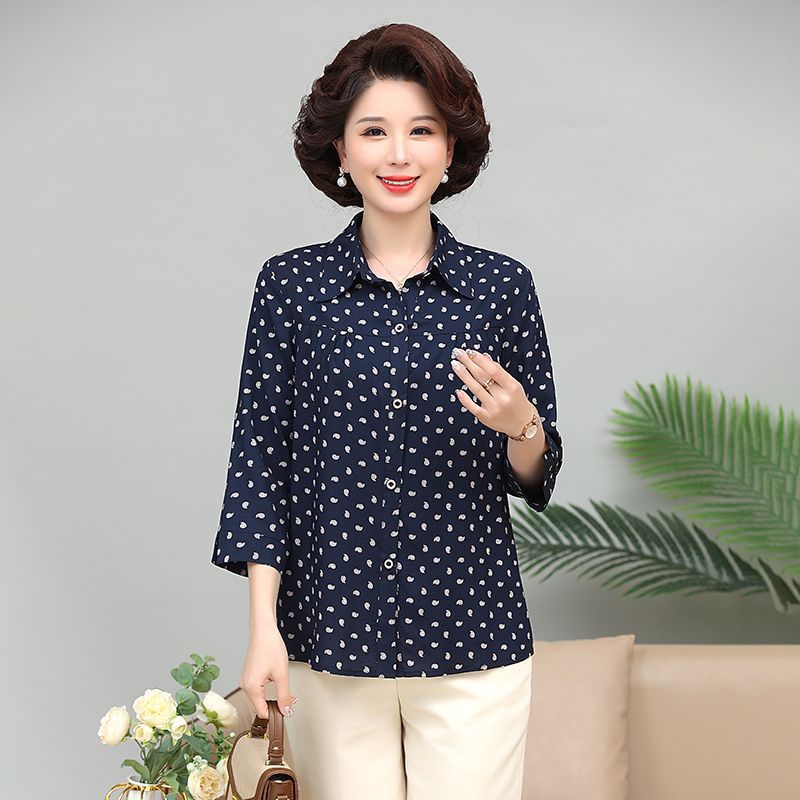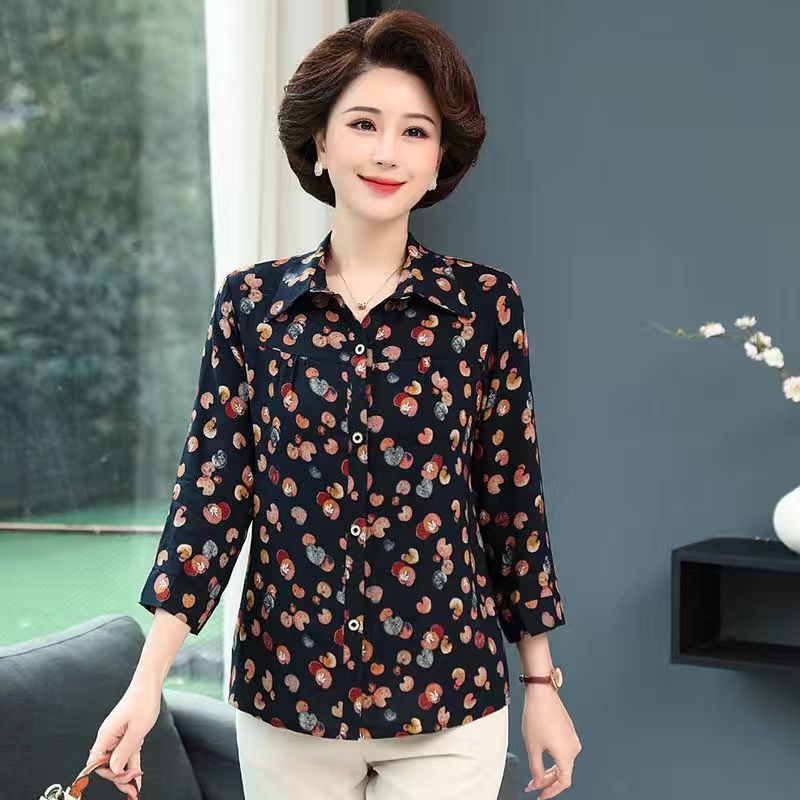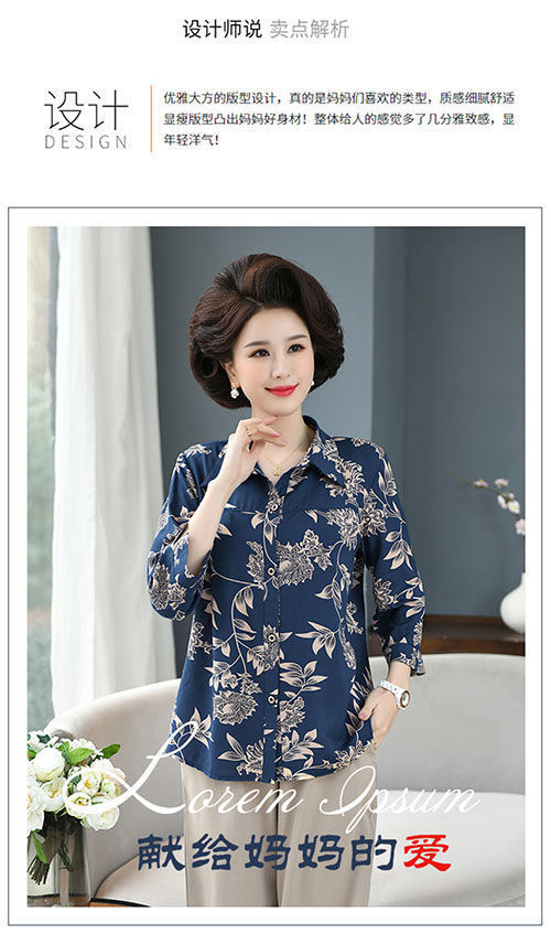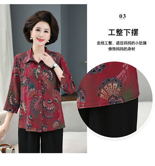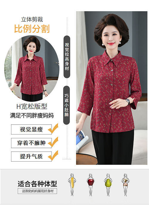 중년 및 노인 여성면 실크 셔츠 컬러 어머니의 봄과 여름 셔츠 할머니의 느슨한 카디건 플러스 대형스토어 가기