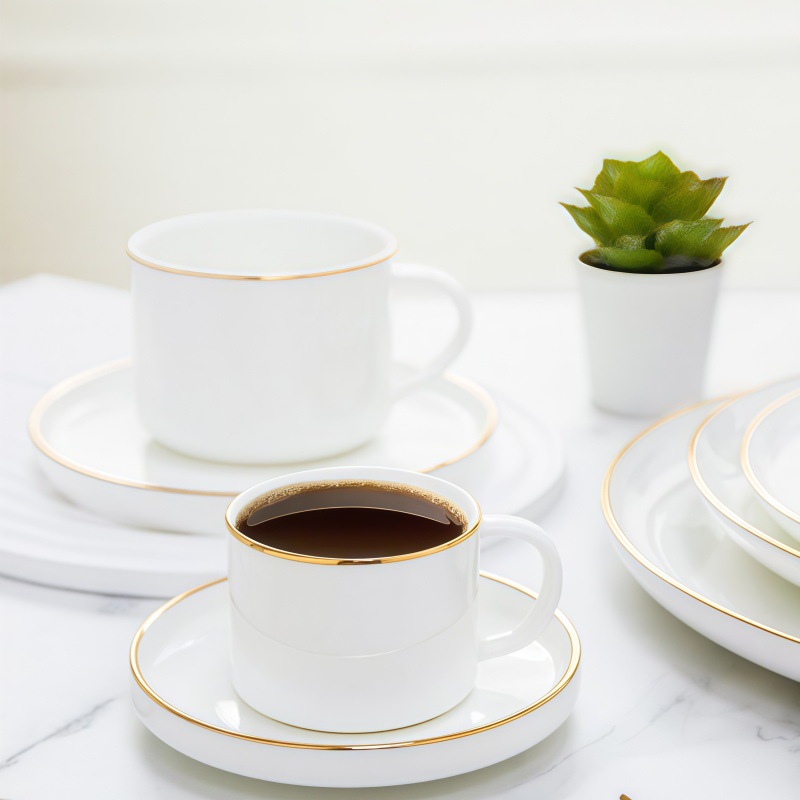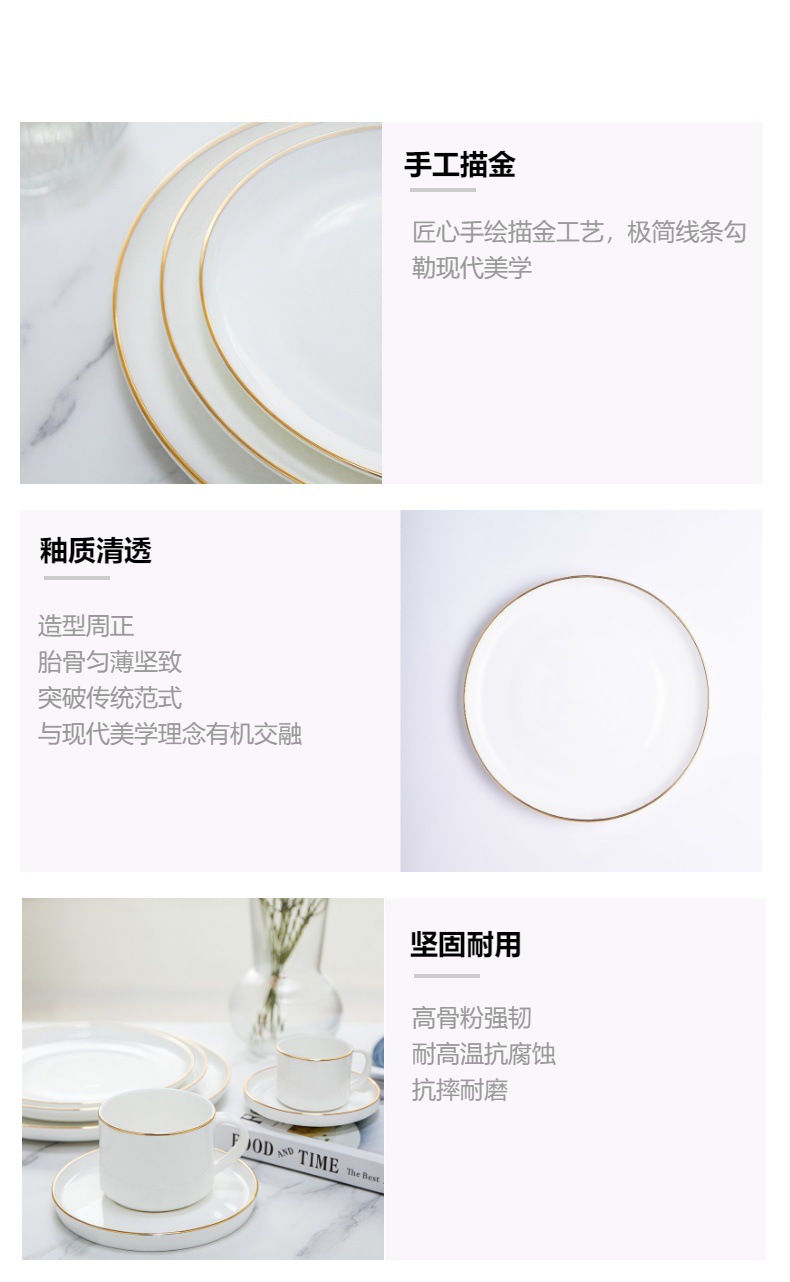 제조업체 도매 심플한 가정용 호텔 금테 도자기 얕은 접시 세트 광고 선물 수출 본차이나 커피잔과 받침스토어 가기