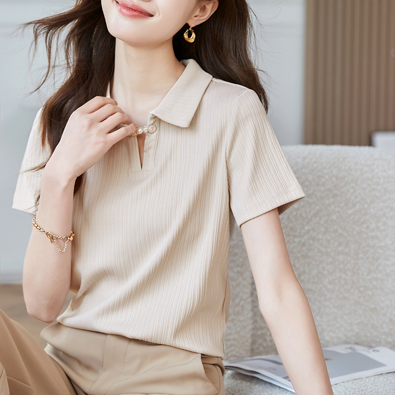 새로운 중국 스트레치 짧은 소매 랩 티셔츠 여성용 2025 년 새 여름 중국 스타일 트렌디 탑