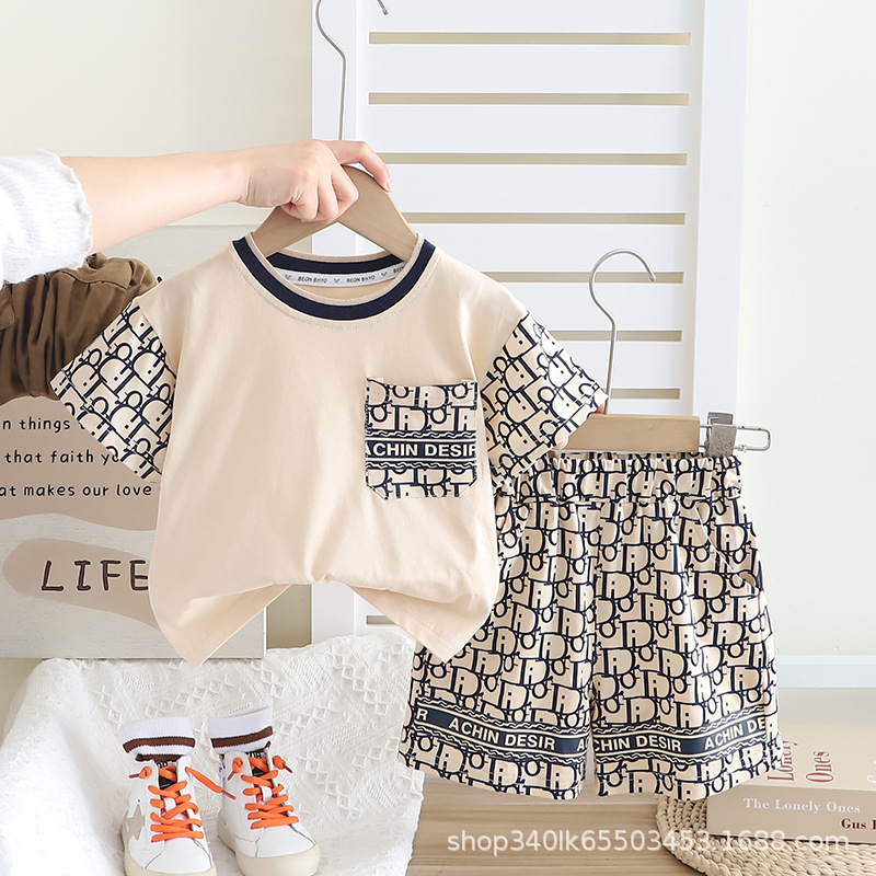 대외 무역 소년 여름 주문 소매 영어 짧은 소매 2025 새로운 캐주얼 아동복 2 피스 공장 도매스토어 가기