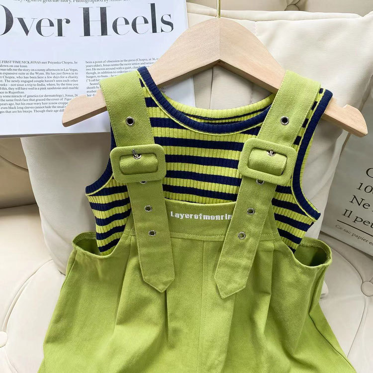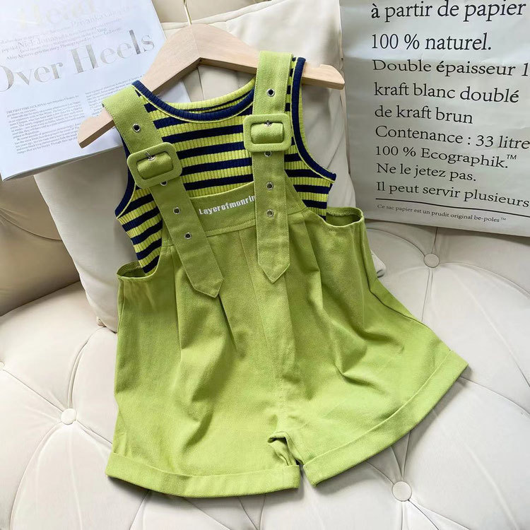 여자 서스펜더 정장 여름 2025 새로운 여름 스타일 어린이 스타일 반팔 조끼 어린 소녀 바지 투피스 세트스토어 가기