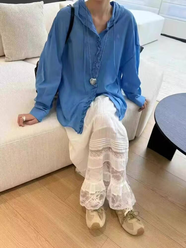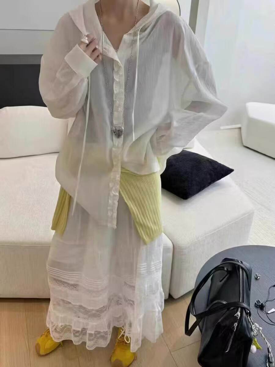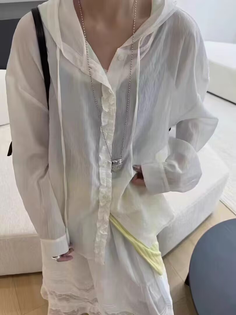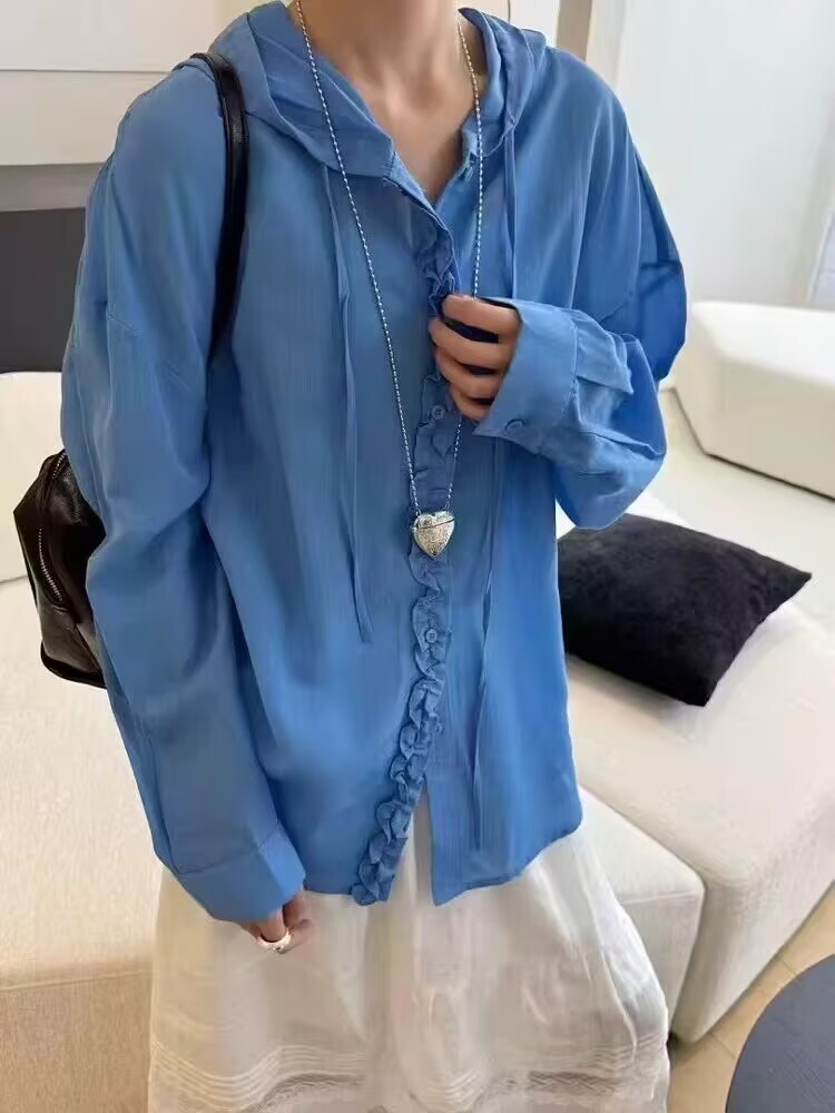 공장 직접 유럽 나무 귀 후드 긴 소매 셔츠 여성 25 봄과 여름 느슨한 태양 보호 코트 셔츠 코트 코트스토어 가기