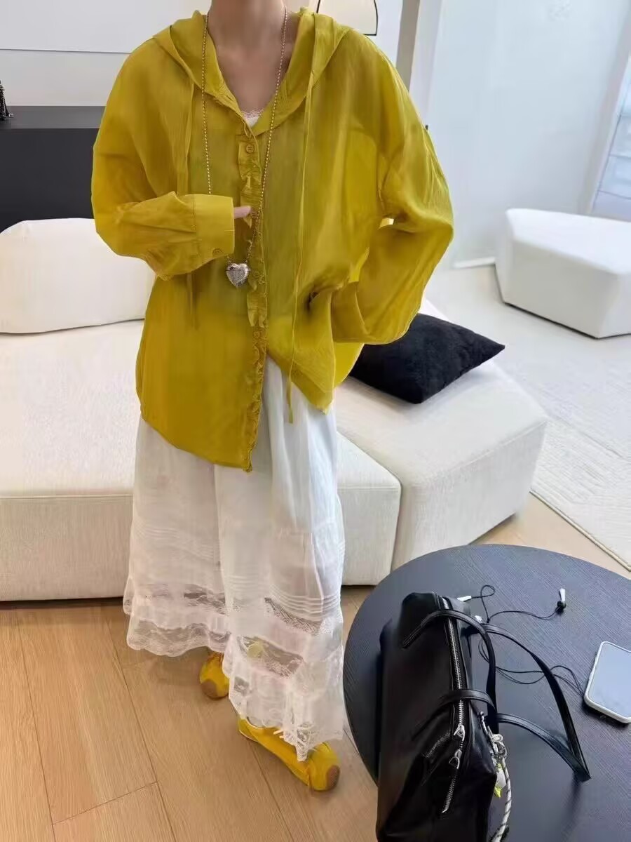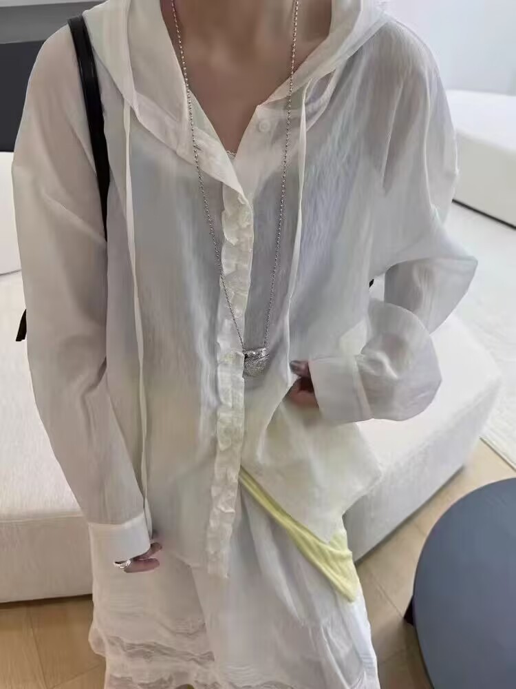 공장 직접 유럽 나무 귀 후드 긴 소매 셔츠 여성 25 봄과 여름 느슨한 태양 보호 코트 셔츠 코트 코트