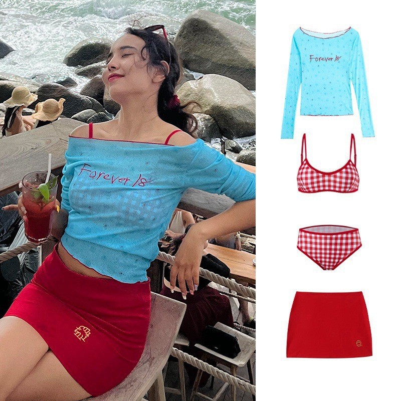 비키니 수영복 여성 2025 새로운 4피스 세트 하이 엔드 스플릿 순수한 욕망 섹시한 작은 가슴 해변 휴가 온천스토어 가기