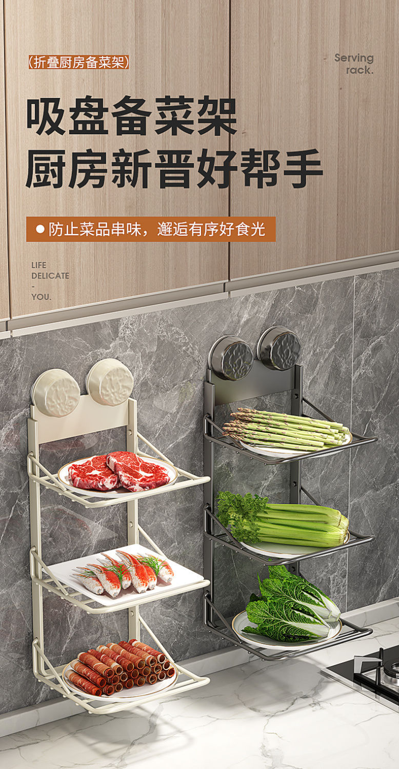 흡입 컵 주방 다층 반찬 다기능 판 벽걸이 형 접이식 벽에 장착 된 저장 유물 야채 보관 랙스토어 가기