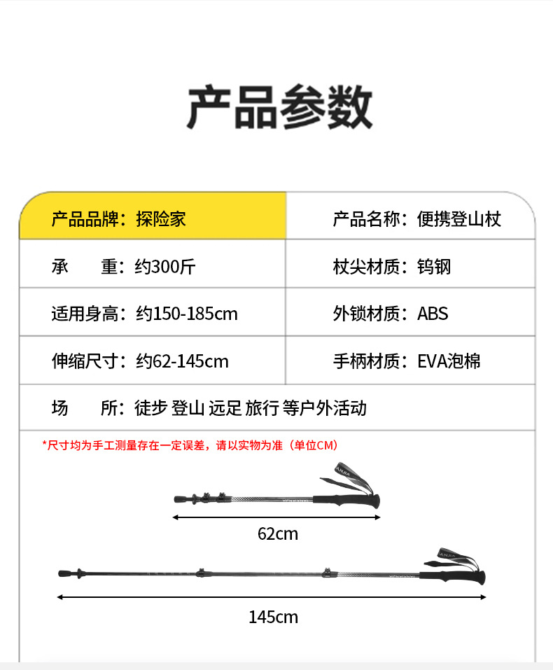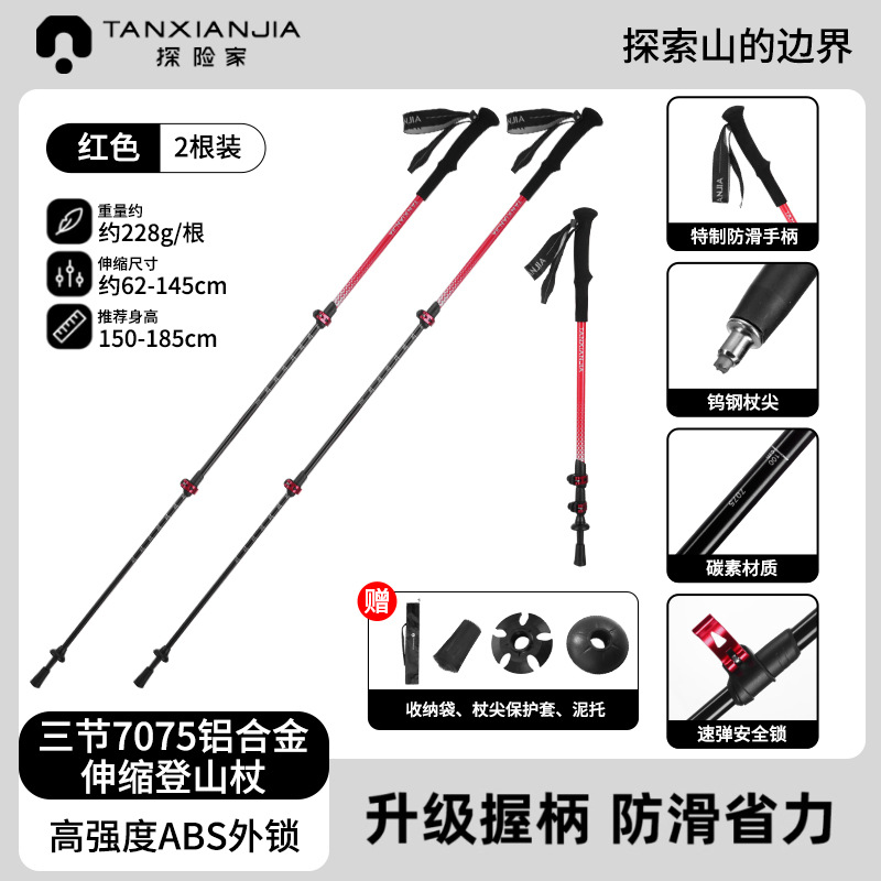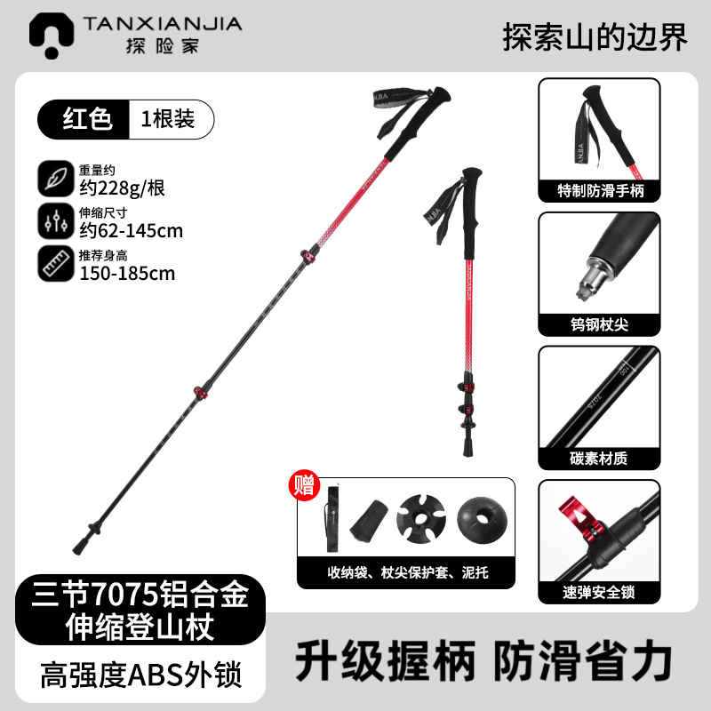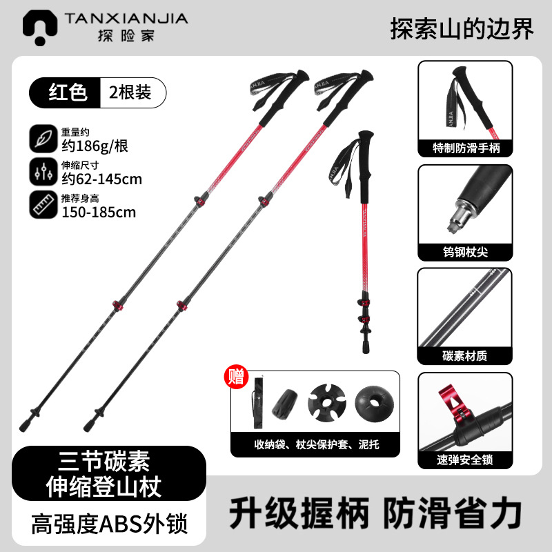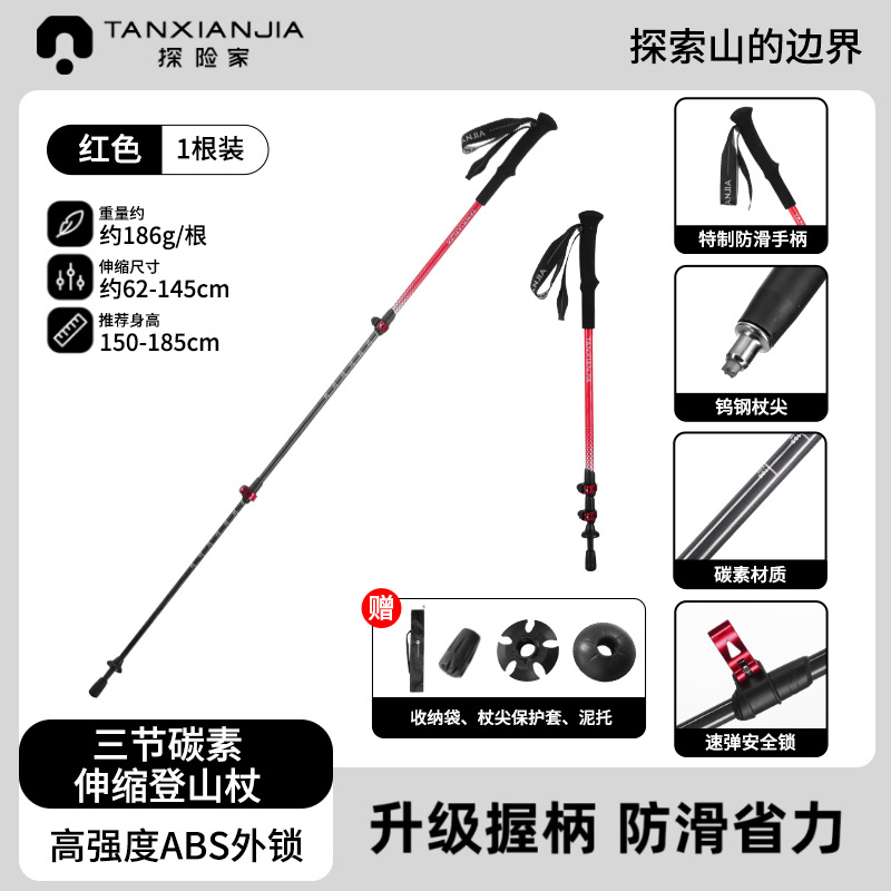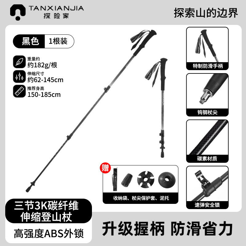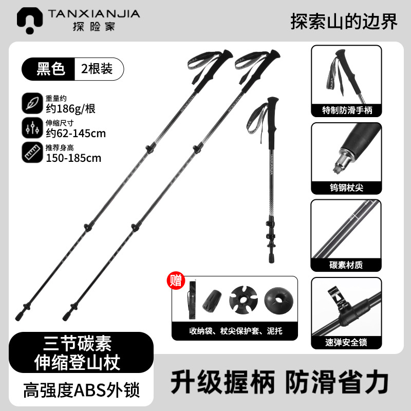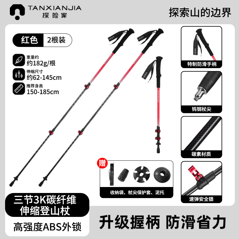 탐험가 트레킹 스틱 탄소 섬유 전문 야외 지팡이 등산 장비 트레킹 스틱 탄소 초경량 텔레스코픽 지팡이