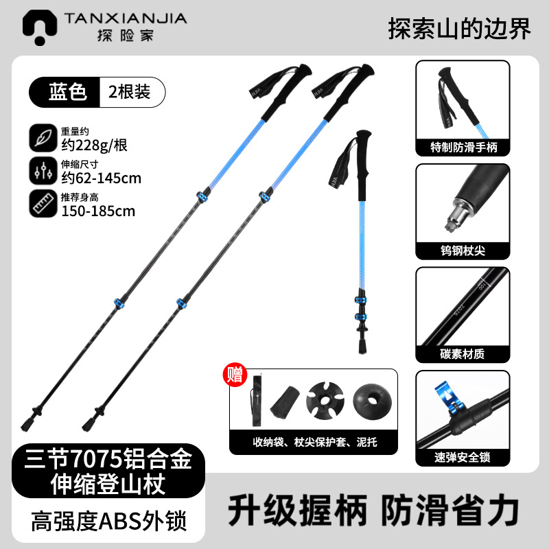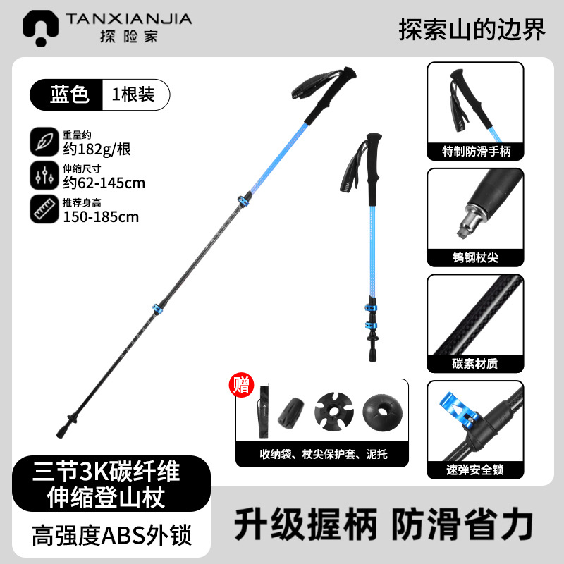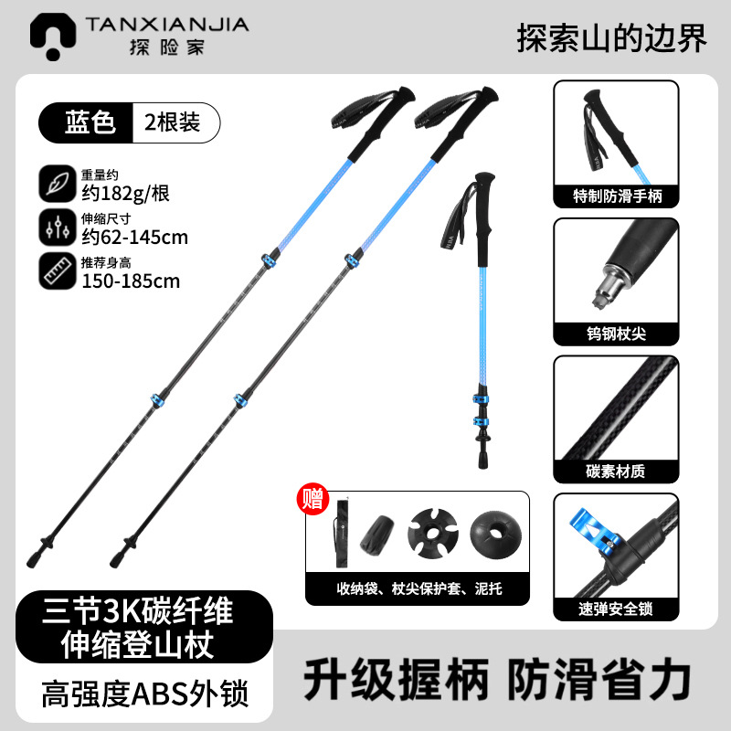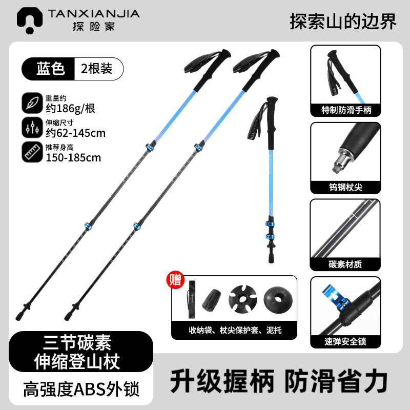 탐험가 트레킹 스틱 탄소 섬유 전문 야외 지팡이 등산 장비 트레킹 스틱 탄소 초경량 텔레스코픽 지팡이스토어 가기