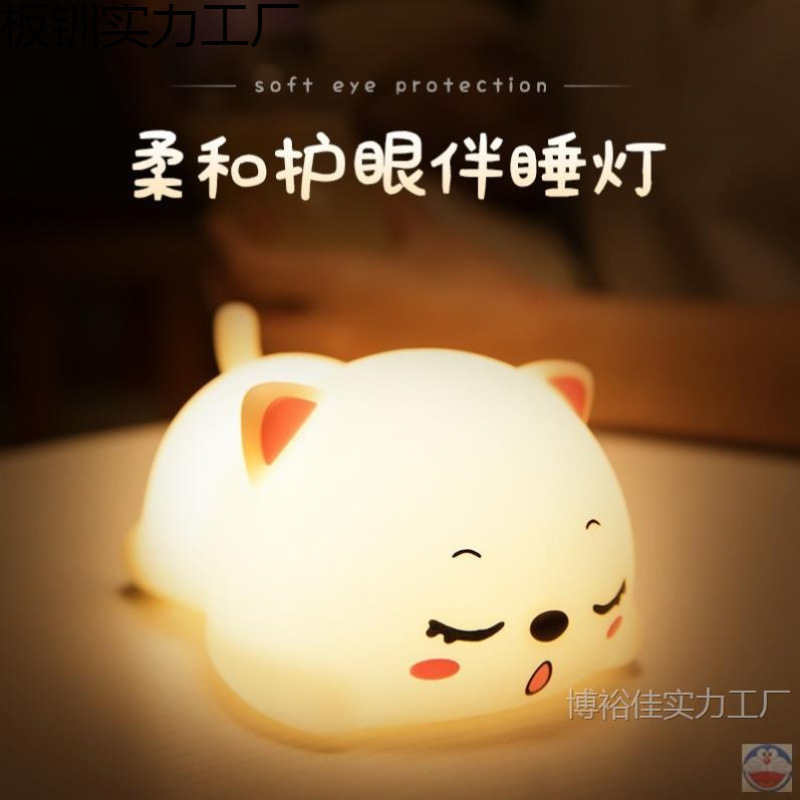 불행하면 나를 꼬집어보세요, 야간 조명, 코골이 고양이 실리콘 램프, 색상 변경, 부드럽고 귀여운, 충전식 소형 테이블 램프 가방