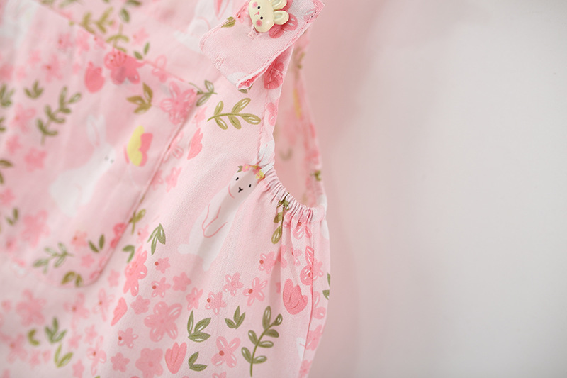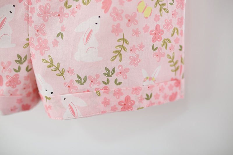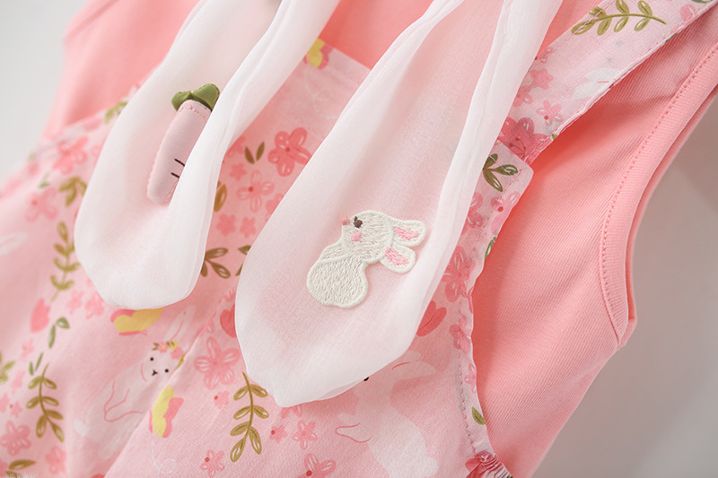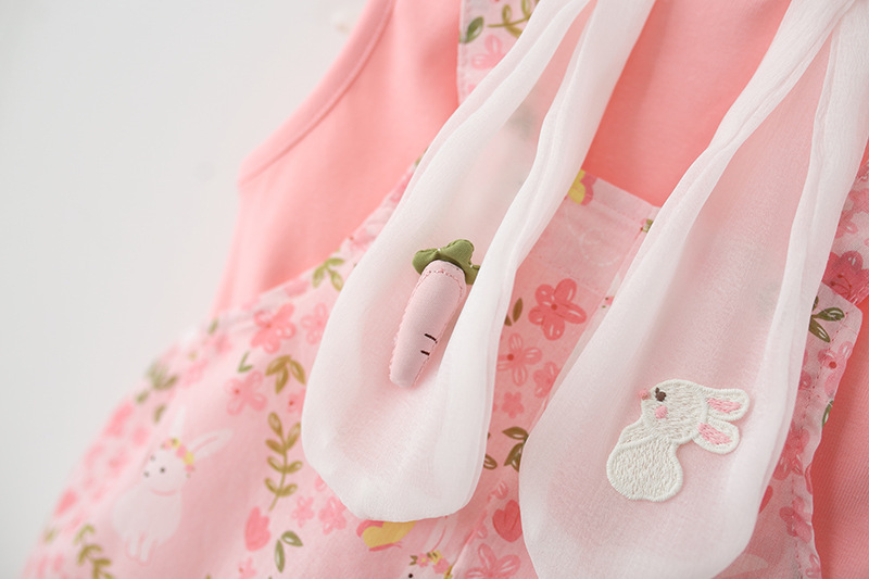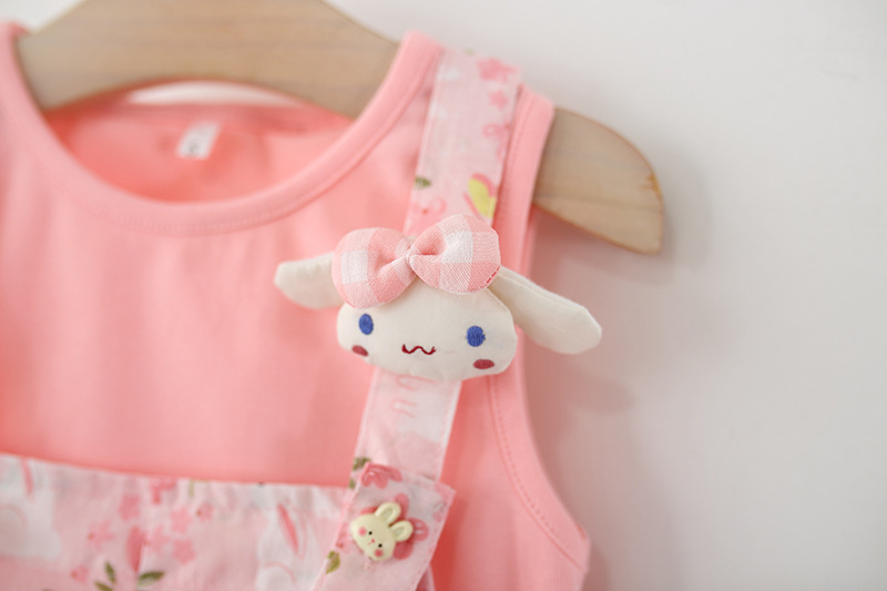 어린이 2025 새로운 소녀 세트 여름 아기 소녀 아기 꽃 토끼 귀 끈 반바지 투피스 세트