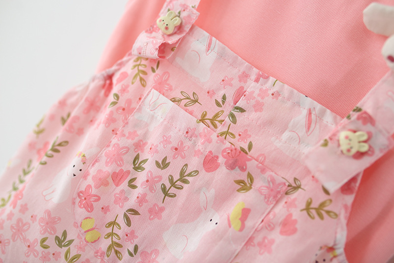 어린이 2025 새로운 소녀 세트 여름 아기 소녀 아기 꽃 토끼 귀 끈 반바지 투피스 세트스토어 가기