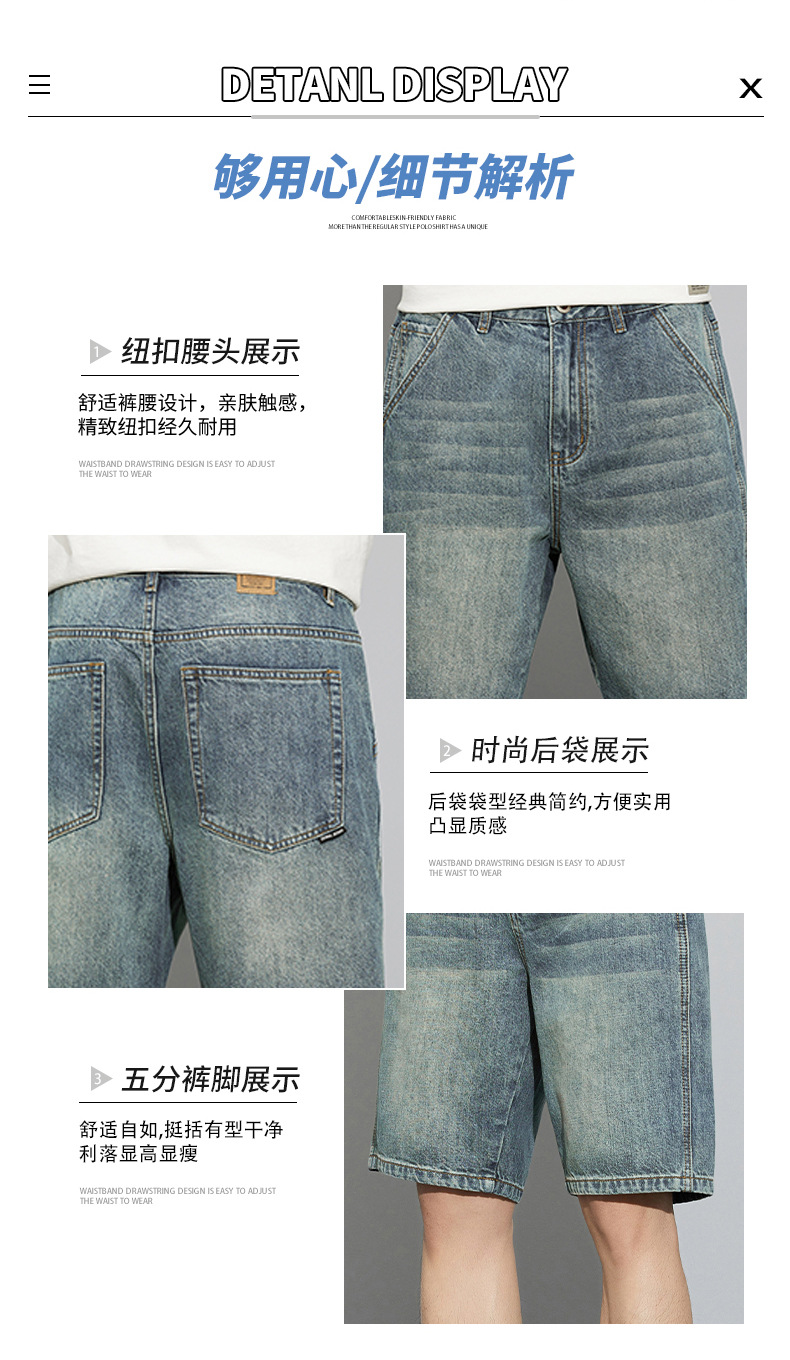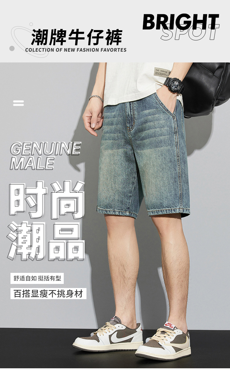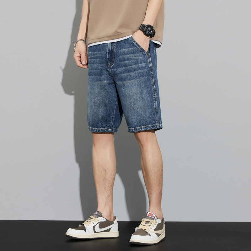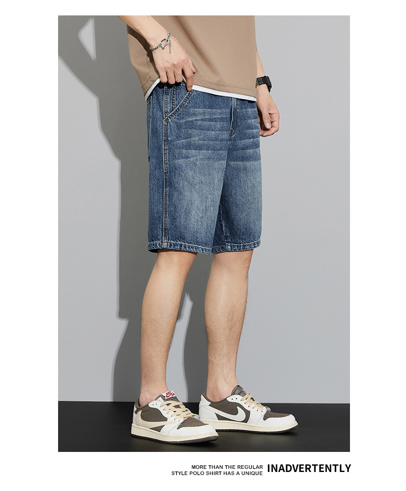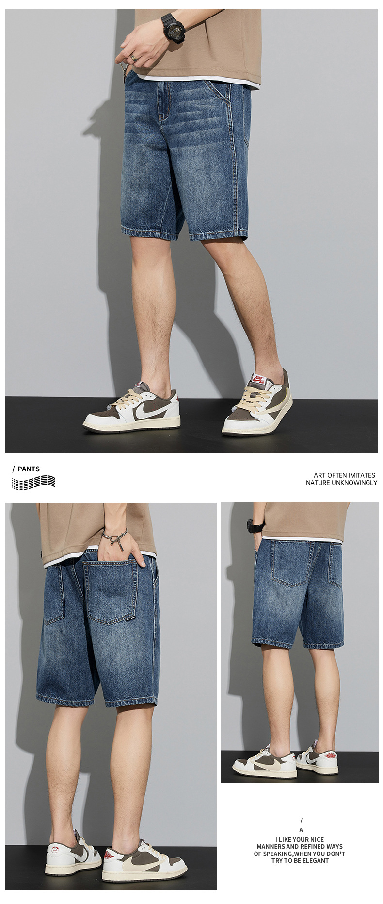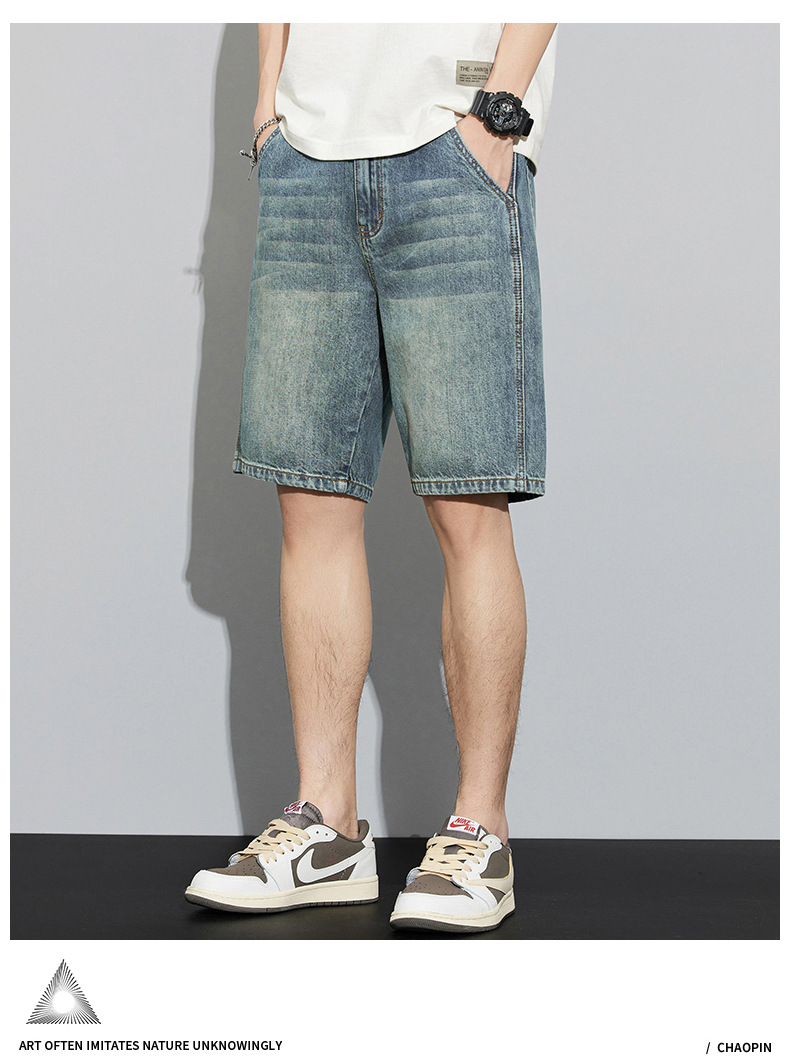 새로운 스타일 씻은 모든 경기 청바지 반바지 남자 여름 느슨한 스트레이트 레트로 하이 스트리트 패션 팬츠 남자스토어 가기