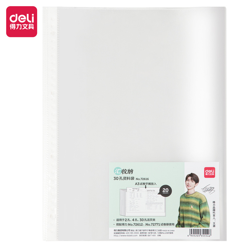 델리 72616_30홀 정보가방(투명)(20개/팩) 파일가방/오르간가방/폴더