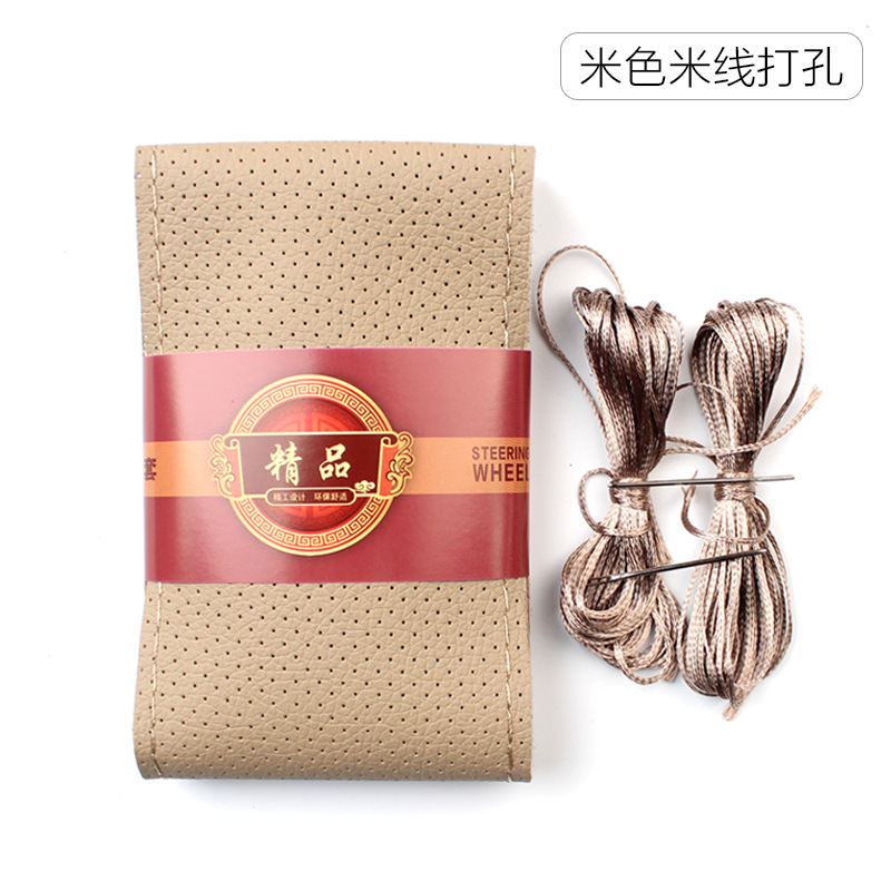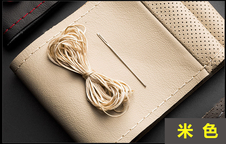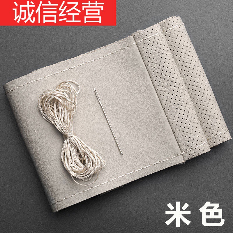 • 1층 가죽 핸드 스티치 스티어링 휠 커버 [베이지] 10년 보증