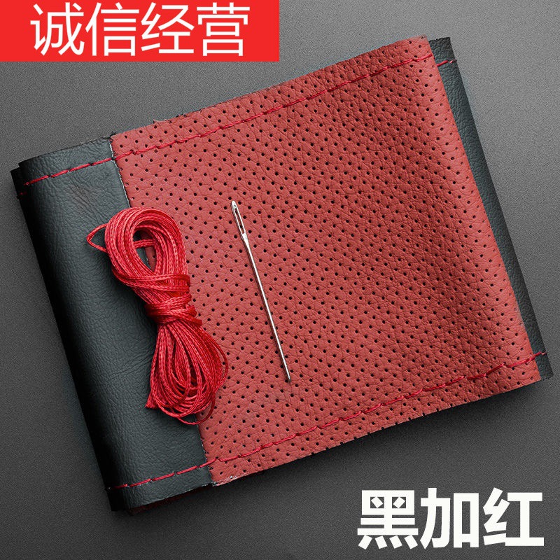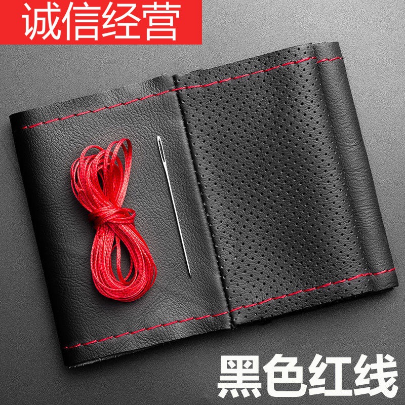 • 1층 가죽 핸드 스티치 스티어링 휠 커버 [블랙 레드 라인] 10년 보증