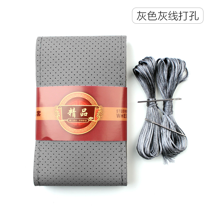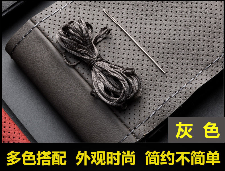 • 2겹 가죽 핸드 스티치 스티어링 휠 커버 [풀 홀 그레이] 5년 보증