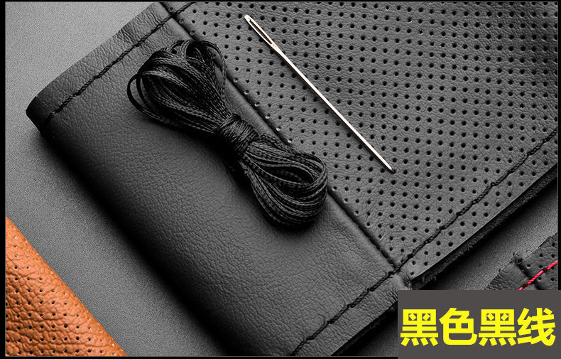 • 1층 가죽 핸드 스티치 스티어링 휠 커버 [블랙 블랙 라인] 10년 보증
