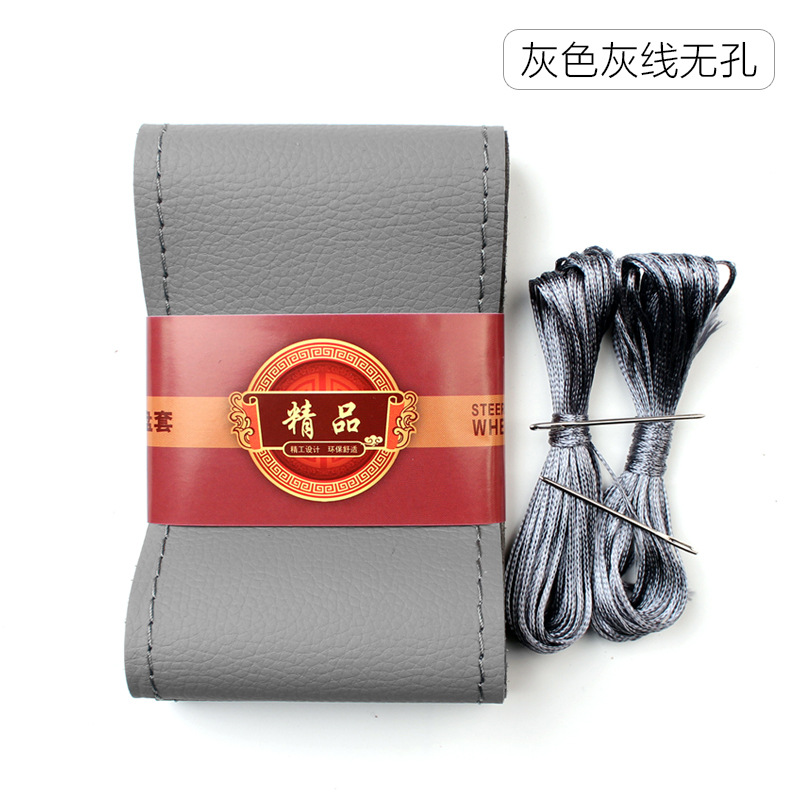 • 2겹 가죽 핸드 스티치 스티어링 휠 커버 [구멍 없는 회색] 5년 보증