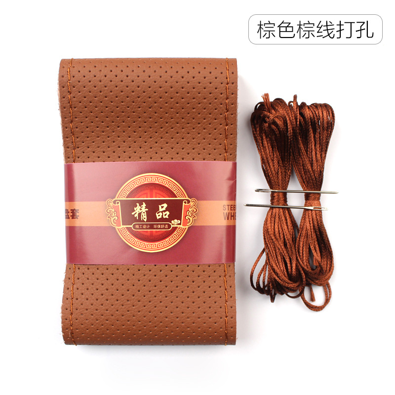 • 2겹 가죽 핸드 스티치 스티어링 휠 커버 [풀 홀 브라운] 5년 보증