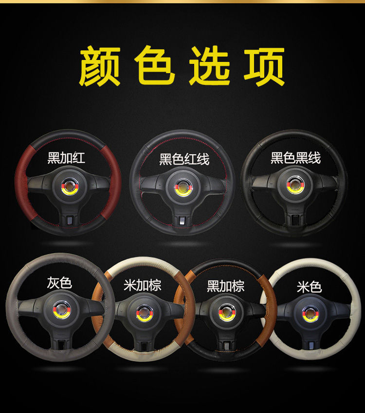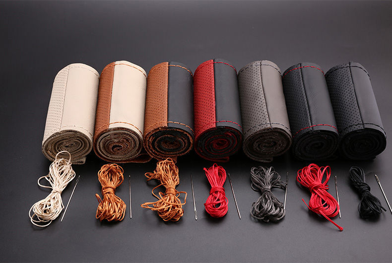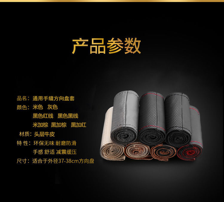 자동차 가죽 손으로 꿰맨 스티어링 휠 커버, 사계절 모두 사용 가능, 1층 소가죽, 통기성 및 내마모성, 손으로 꿰맨 가죽 핸들 커버