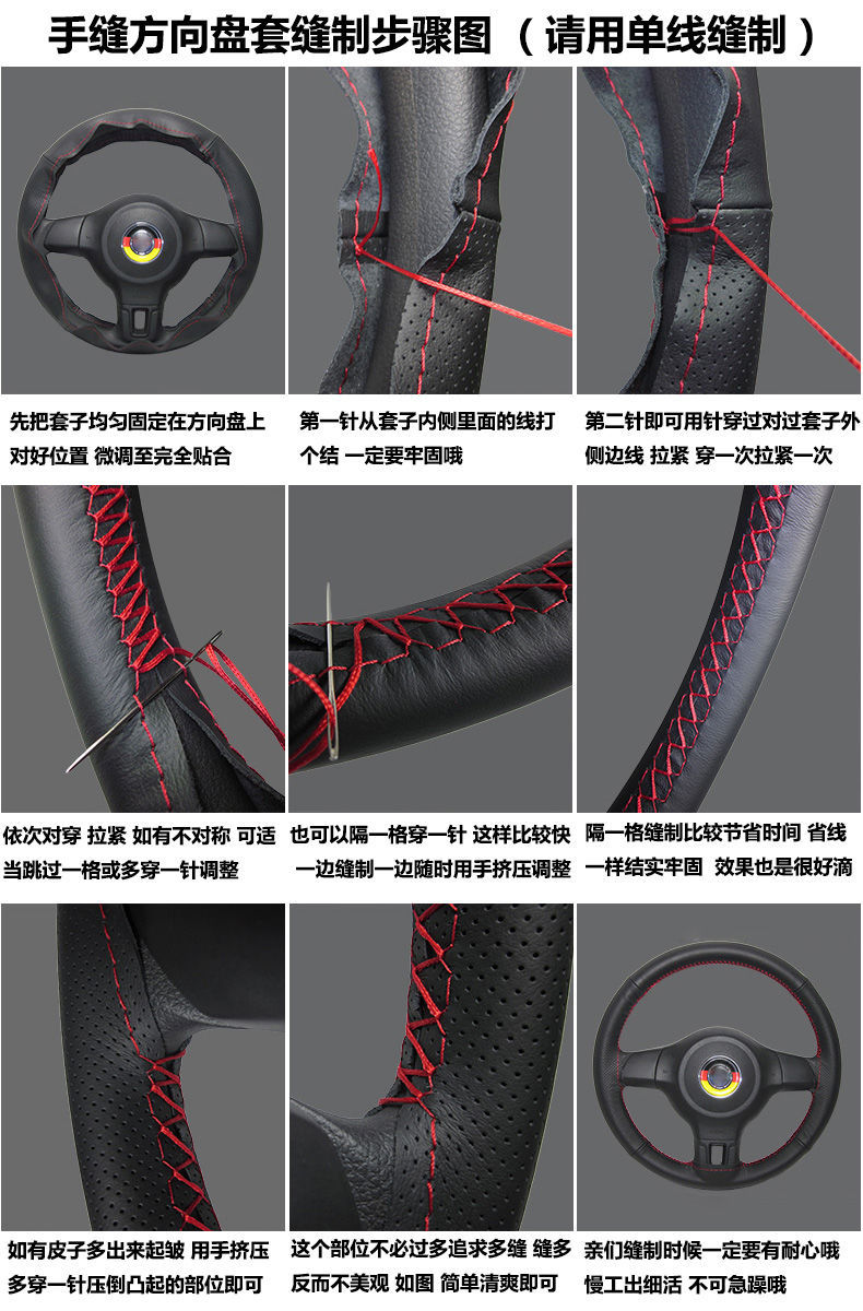 • 최상층 가죽 핸드 스티치 스티어링 휠 커버 [블랙 및 레드] 10년 보증