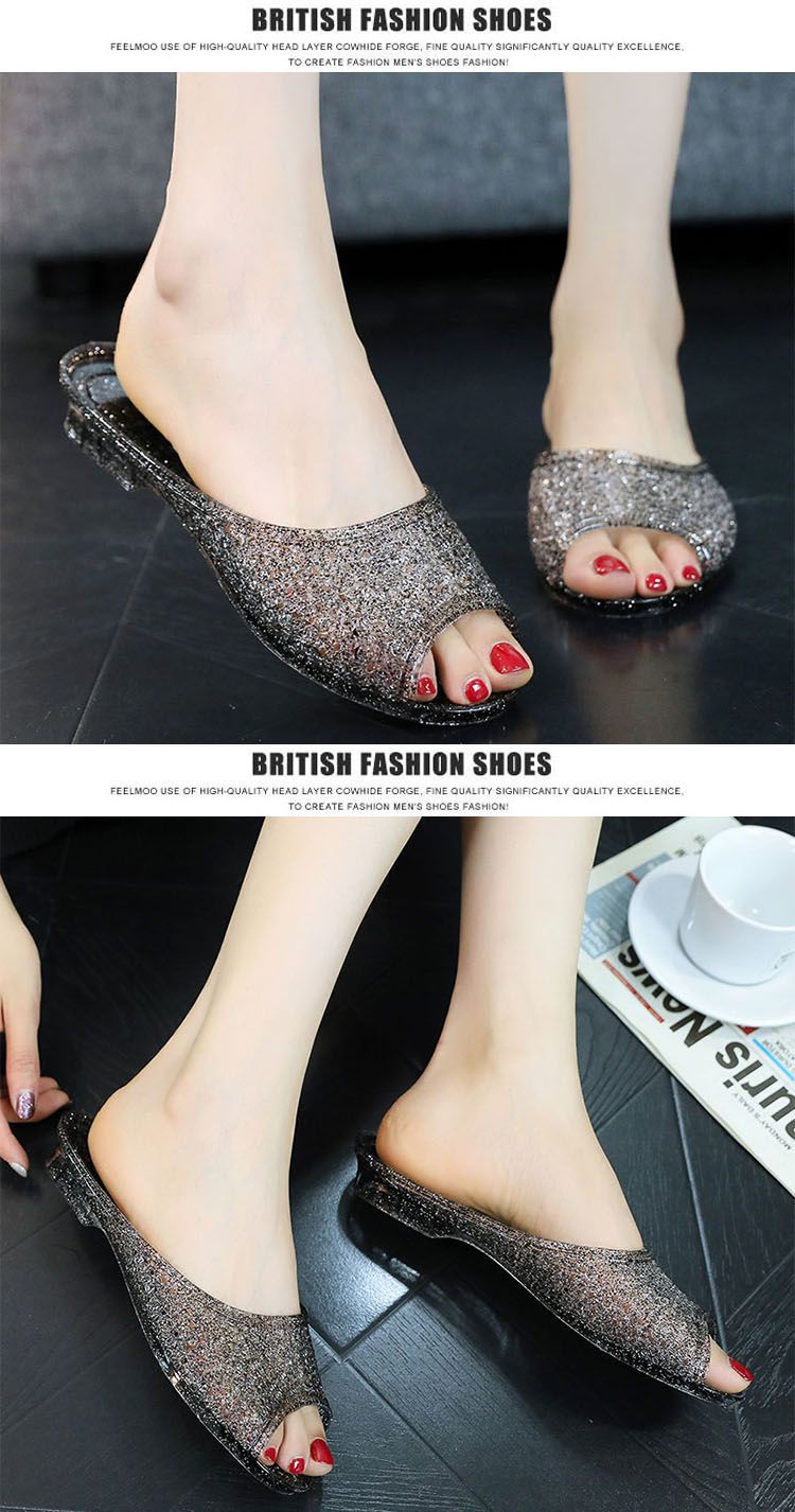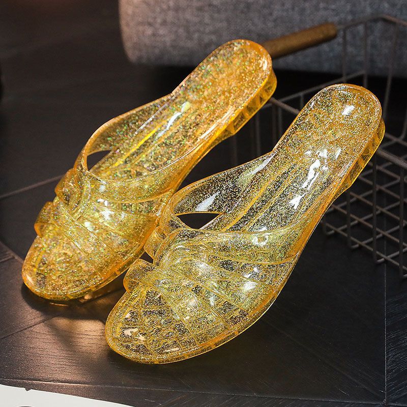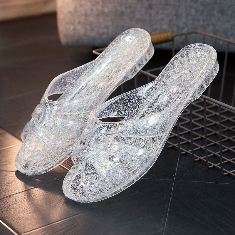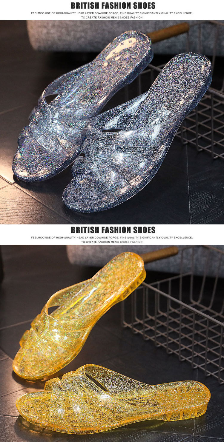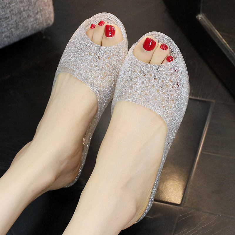 여자 여름 올 매치 홈 실내 크리스탈 바오 터우 동굴 슬리퍼 욕실 냄새 방지 순수 플라스틱 비치 하프 토우 록