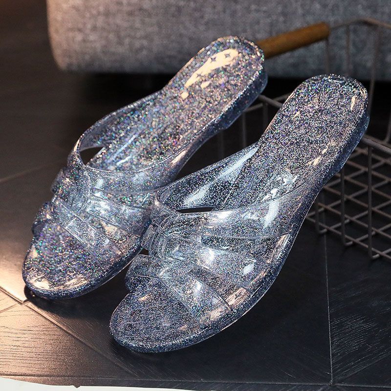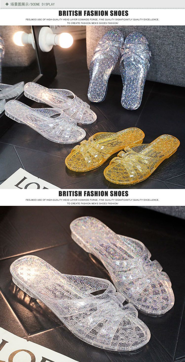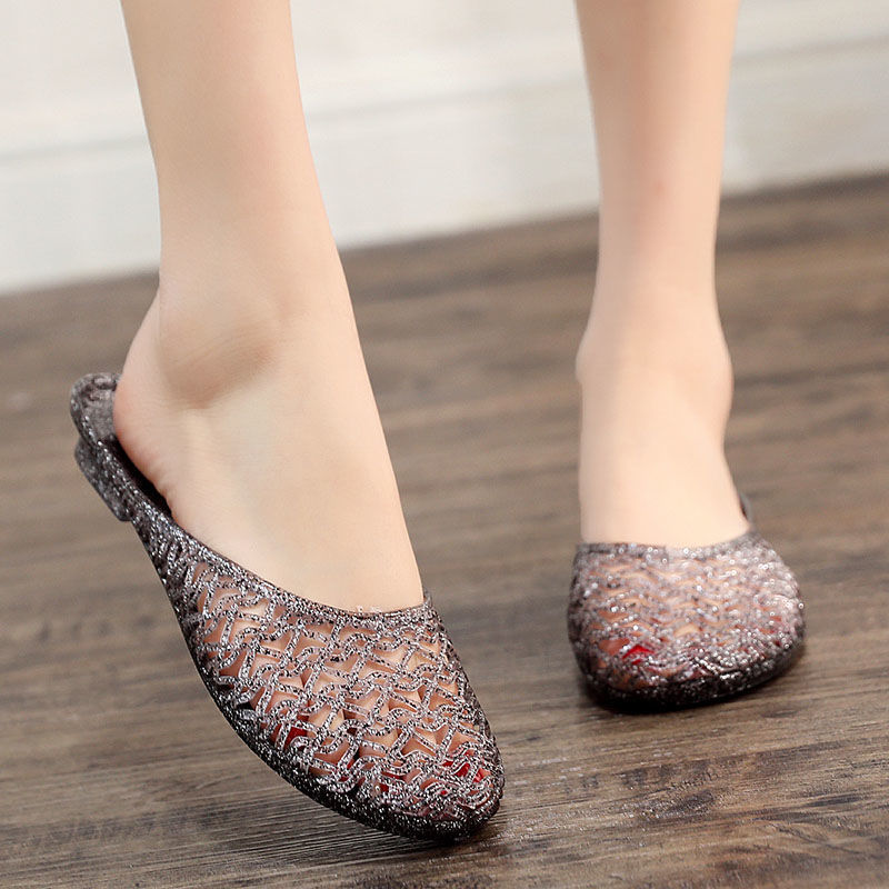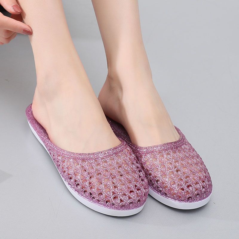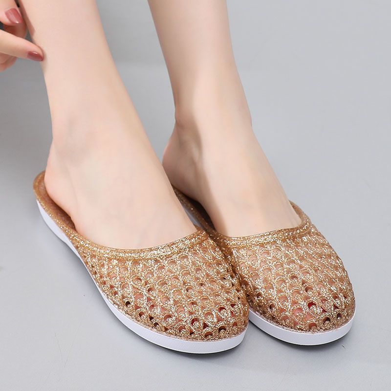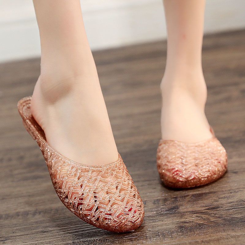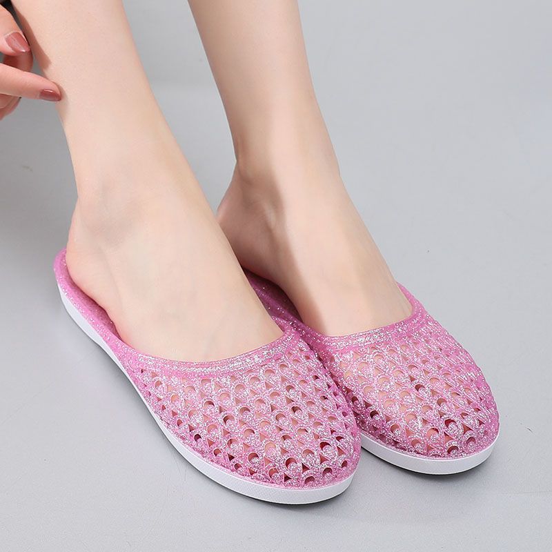 여자 여름 올 매치 홈 실내 크리스탈 바오 터우 동굴 슬리퍼 욕실 냄새 방지 순수 플라스틱 비치 하프 토우 록스토어 가기