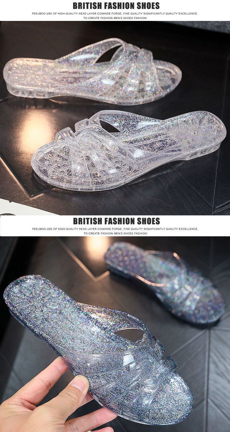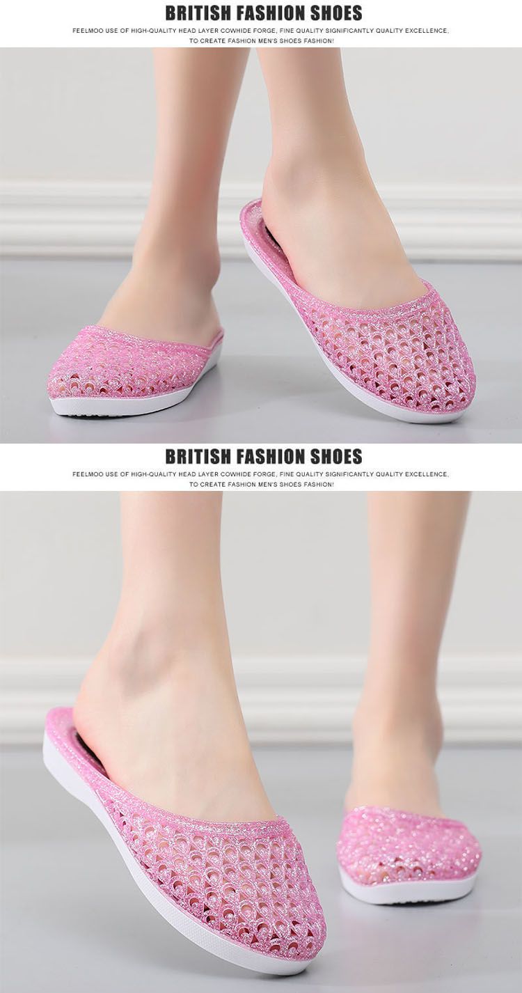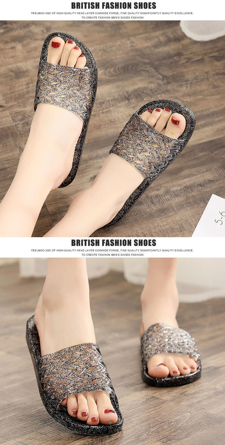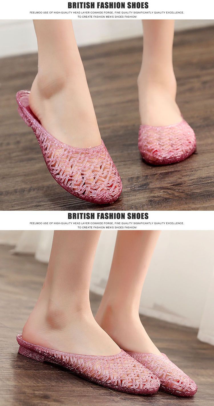 여자 여름 올 매치 홈 실내 크리스탈 바오 터우 동굴 슬리퍼 욕실 냄새 방지 순수 플라스틱 비치 하프 토우 록스토어 가기