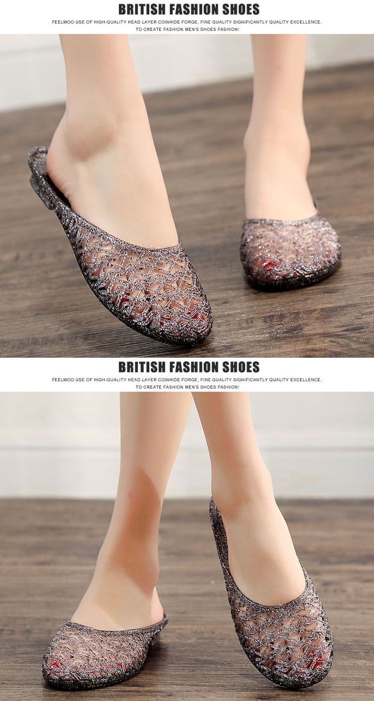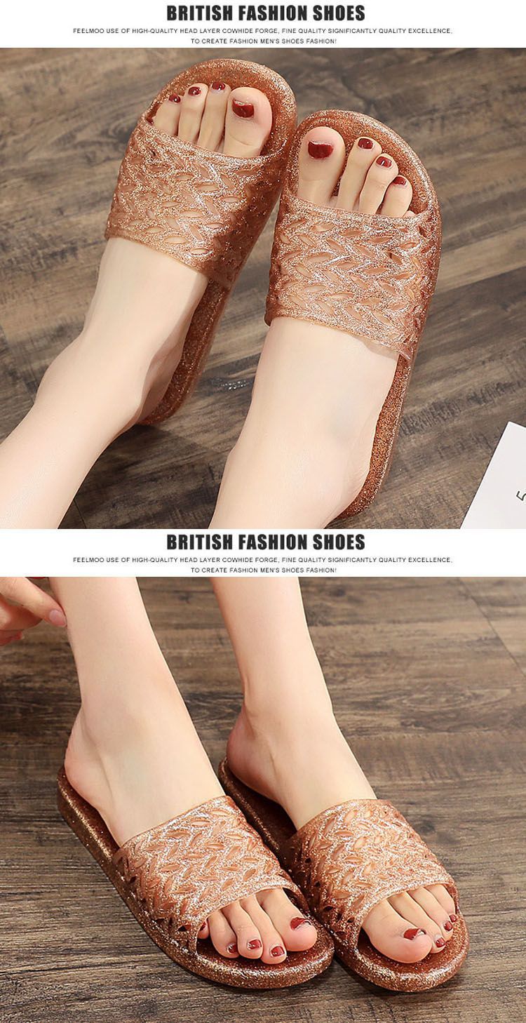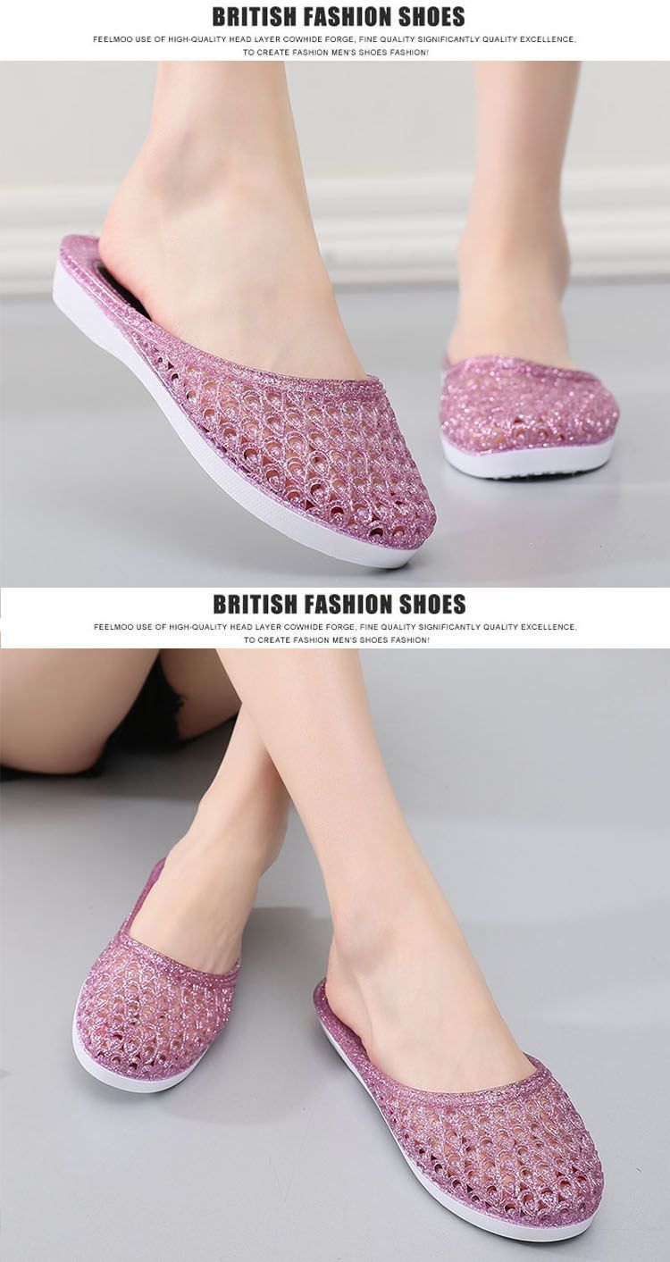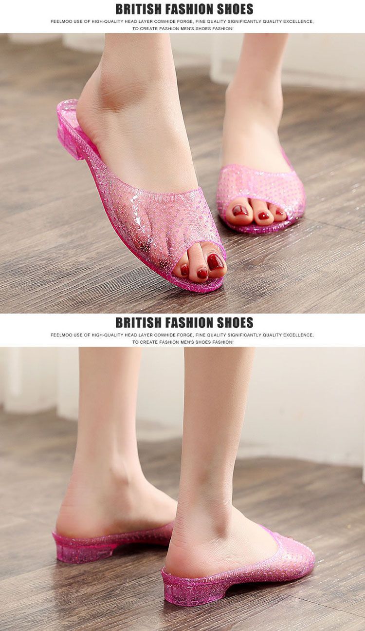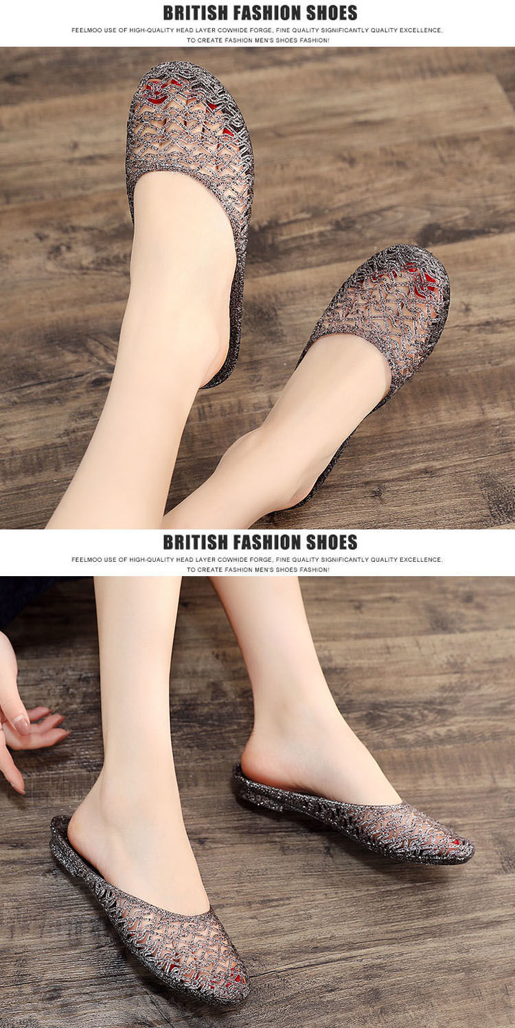 여자 여름 올 매치 홈 실내 크리스탈 바오 터우 동굴 슬리퍼 욕실 냄새 방지 순수 플라스틱 비치 하프 토우 록스토어 가기