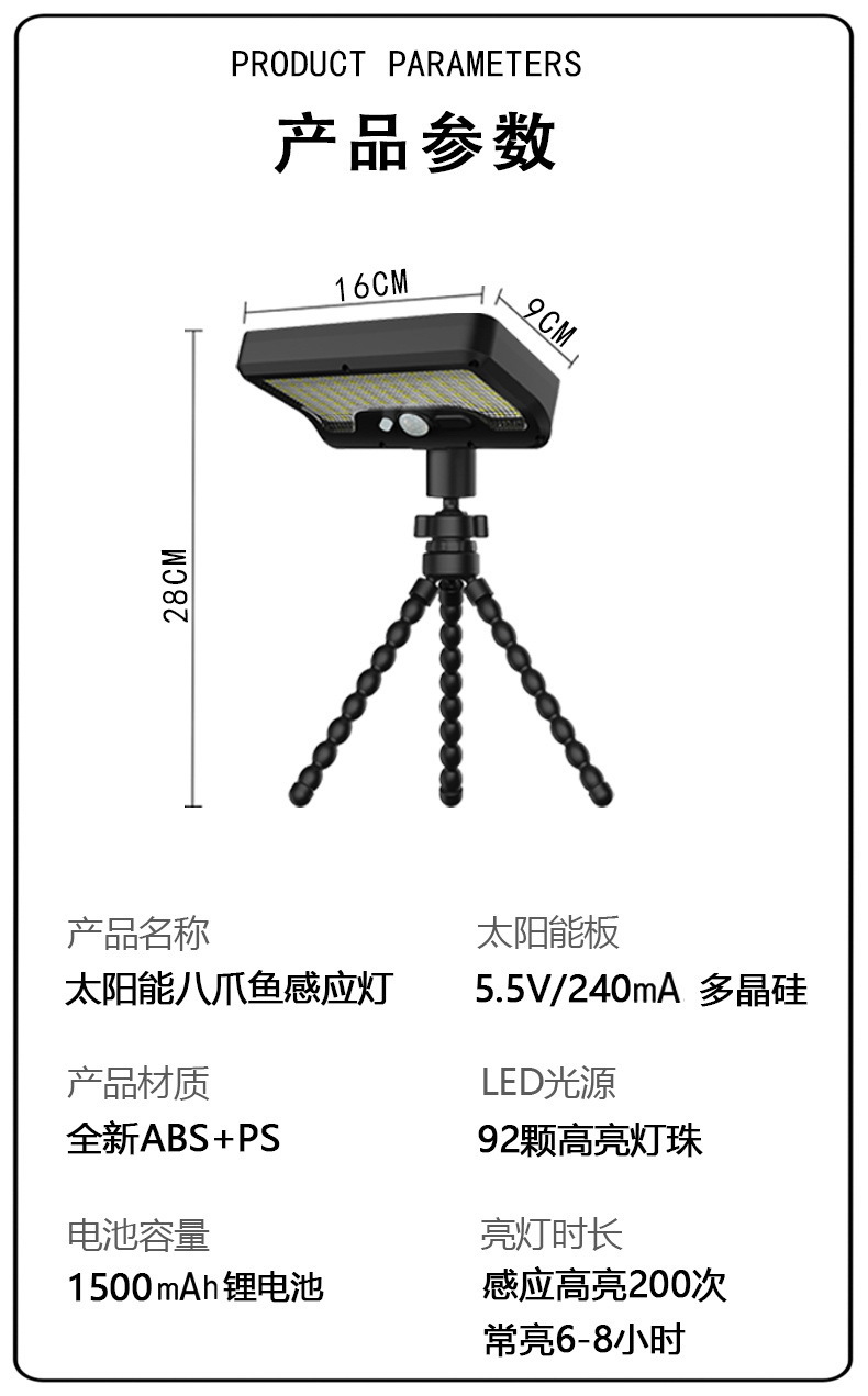 • 문어 센서 라이트 따뜻한 빛 92LED 화이트