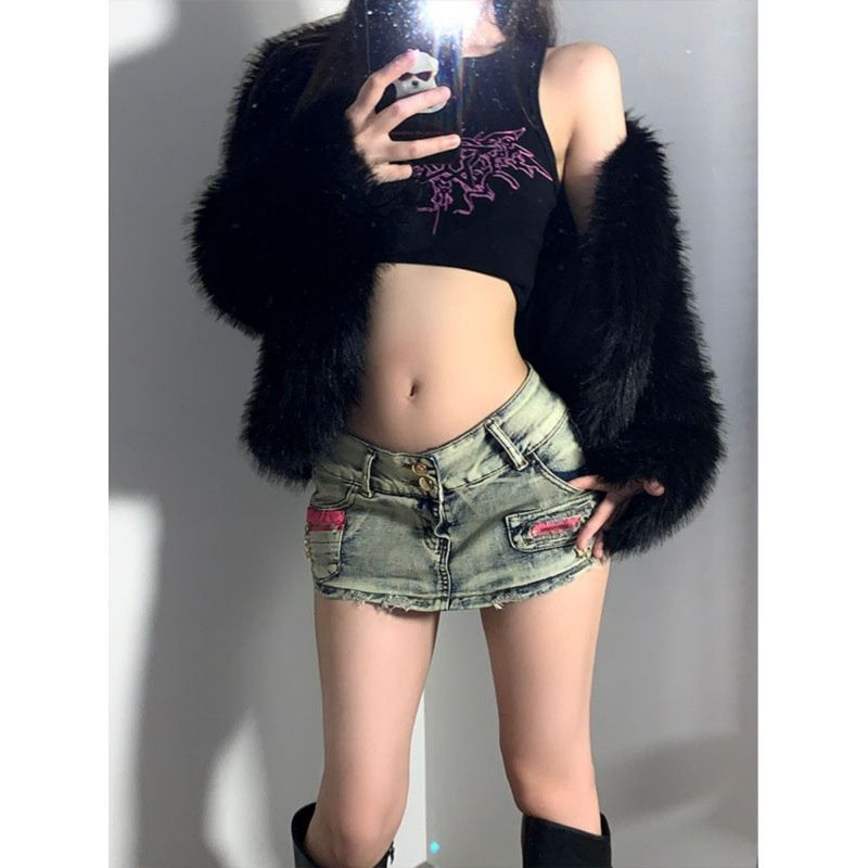 유럽과 미국의 y2k 핫 소녀 미니 스커트 여성 여름 엉덩이 리프팅 데님 반바지 로우 웨이스트 섹시한 a 라인 힙 커버 하프 스커트 유행스토어 가기
