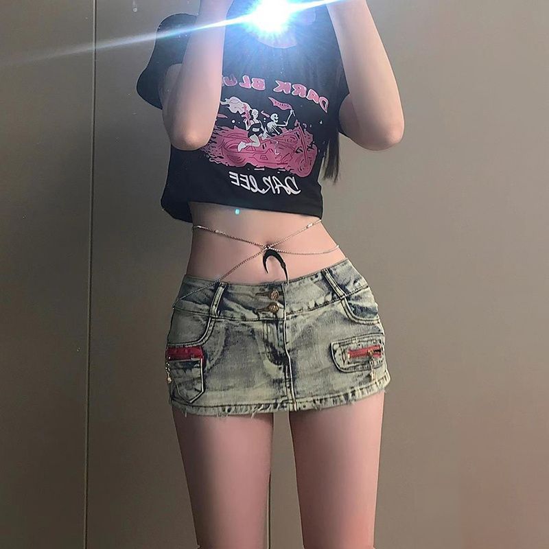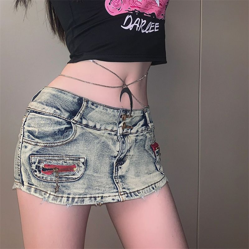 유럽과 미국의 y2k 핫 소녀 미니 스커트 여성 여름 엉덩이 리프팅 데님 반바지 로우 웨이스트 섹시한 a 라인 힙 커버 하프 스커트 유행