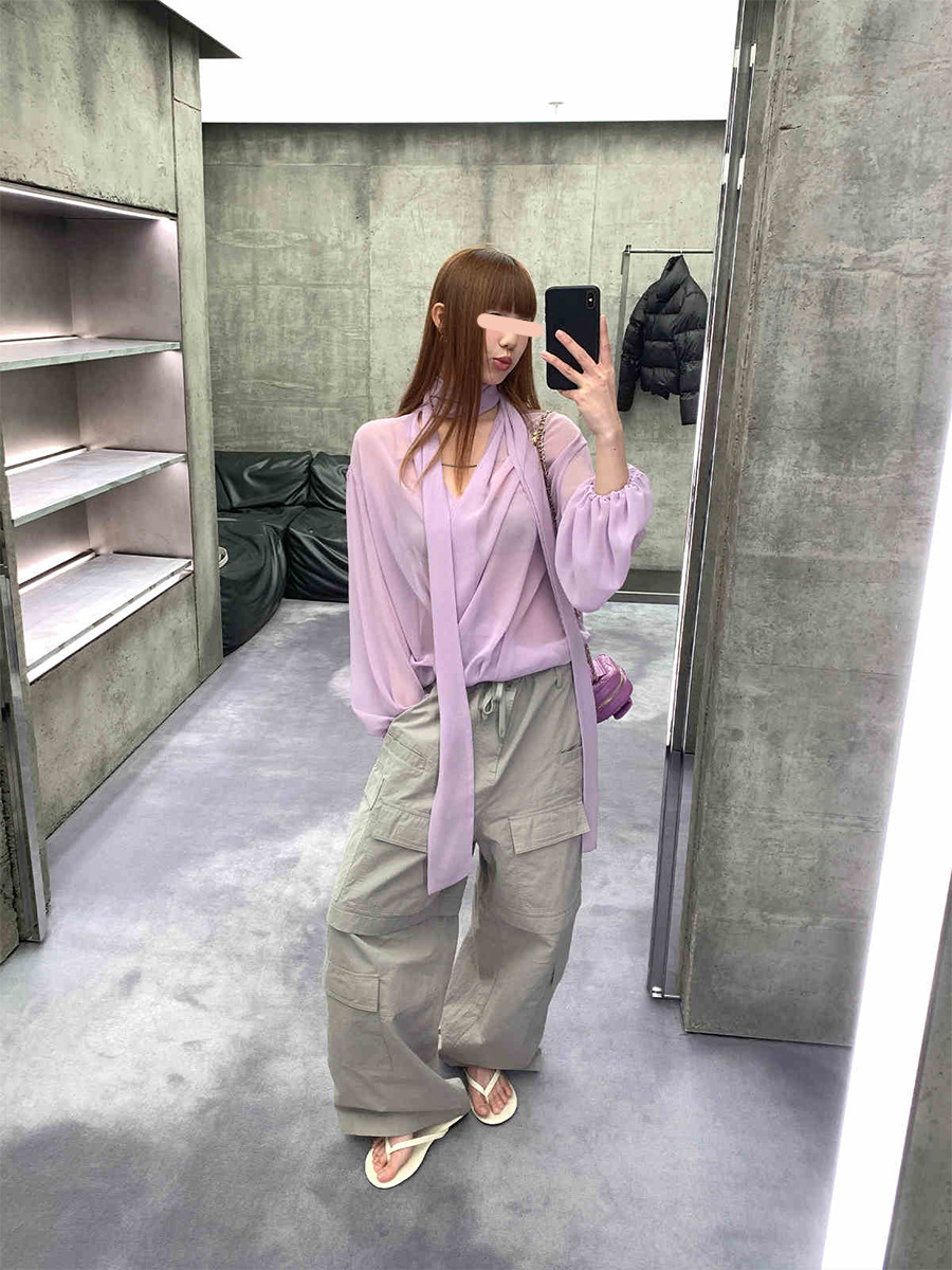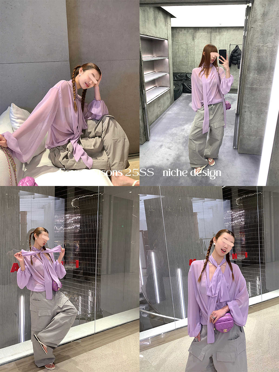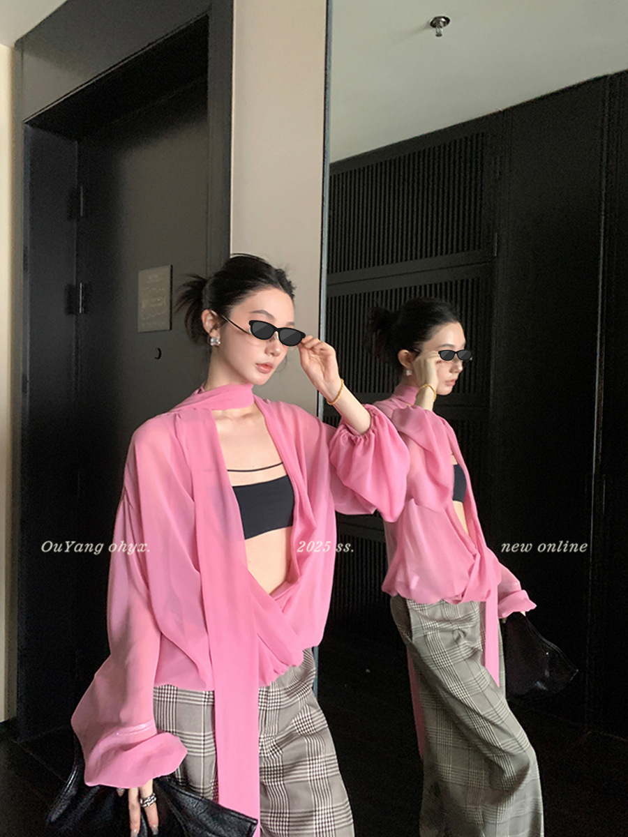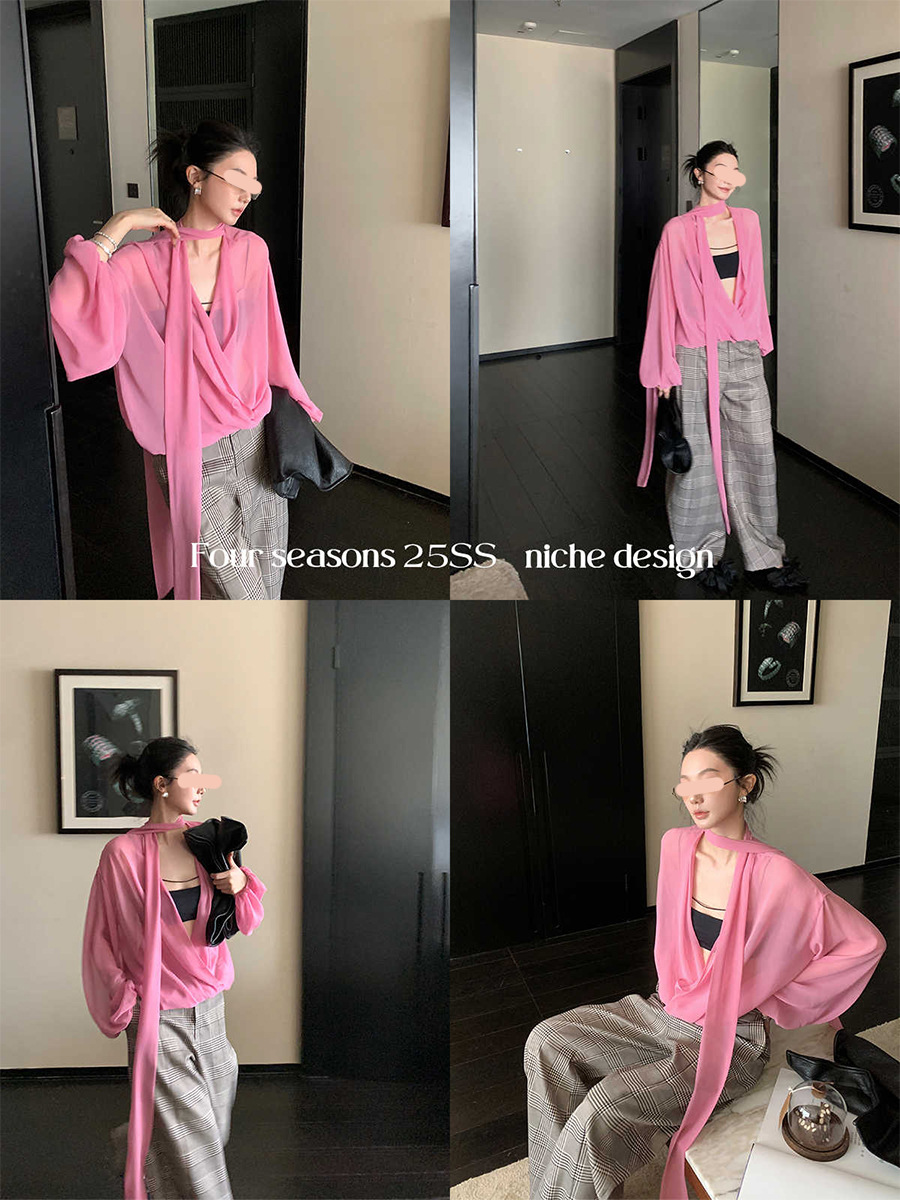 지구 Ouyang 리본 쉬폰 셔츠 여성의 봄 새로운 디자인 감각 틈새 루즈 셔츠 복고풍 긴 소매 탑