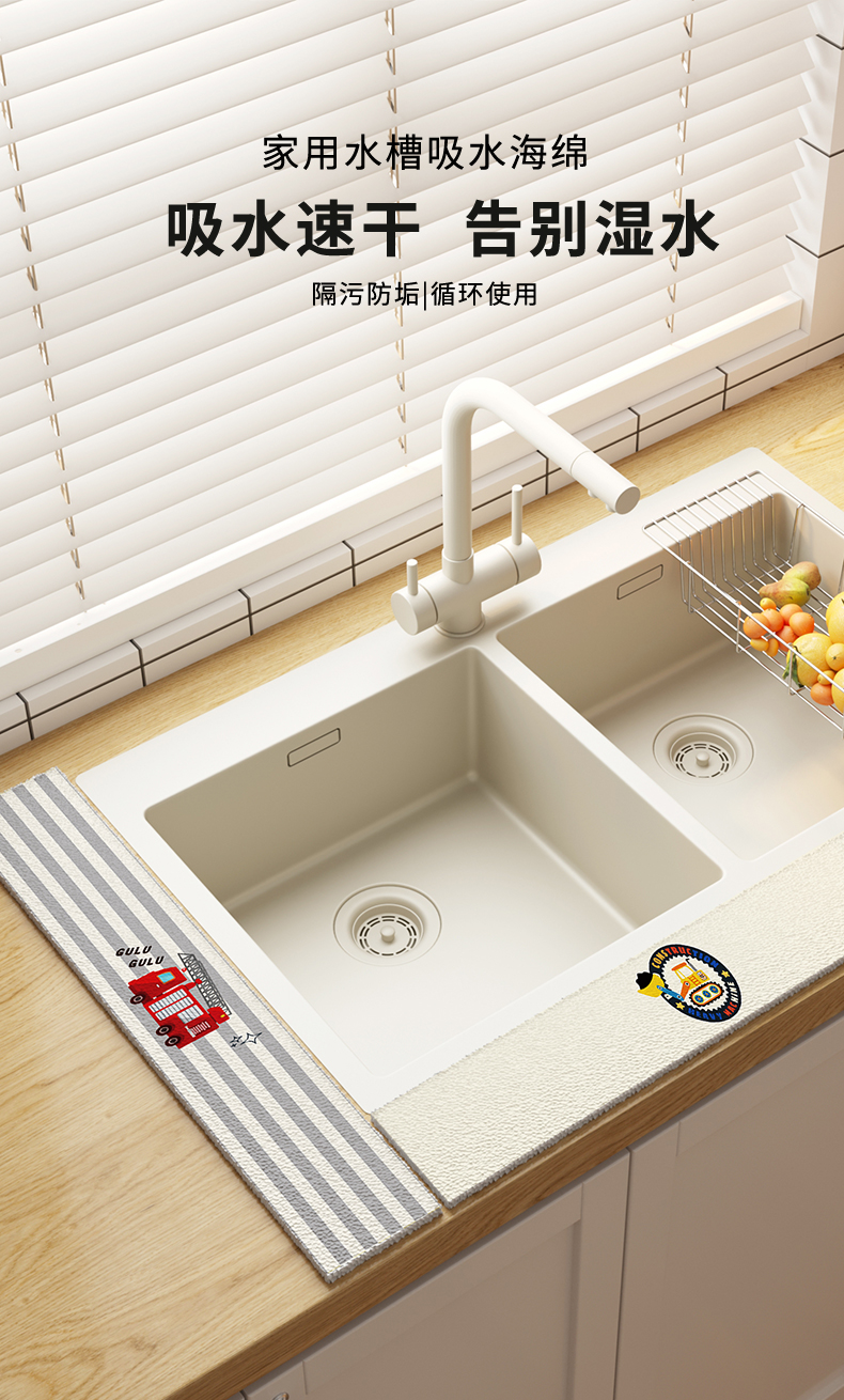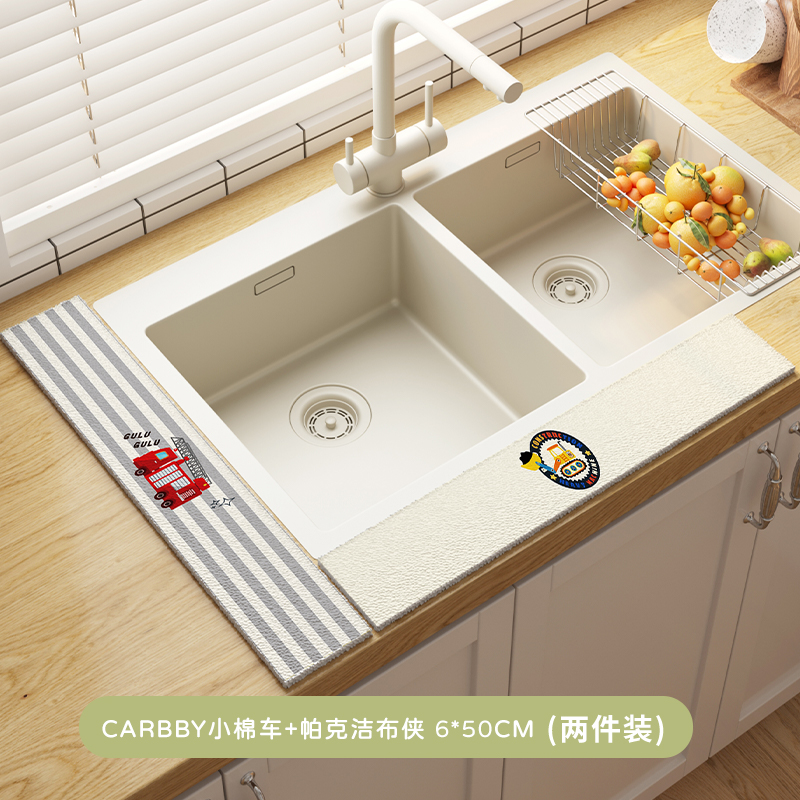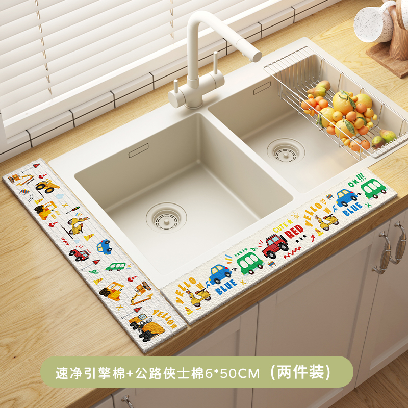 만화 주방 싱크대 카운터 상판 물 튀김 방지 흡수 패드 욕실 싱크대 좁고 긴 목재 펄프 면 배수 패드스토어 가기