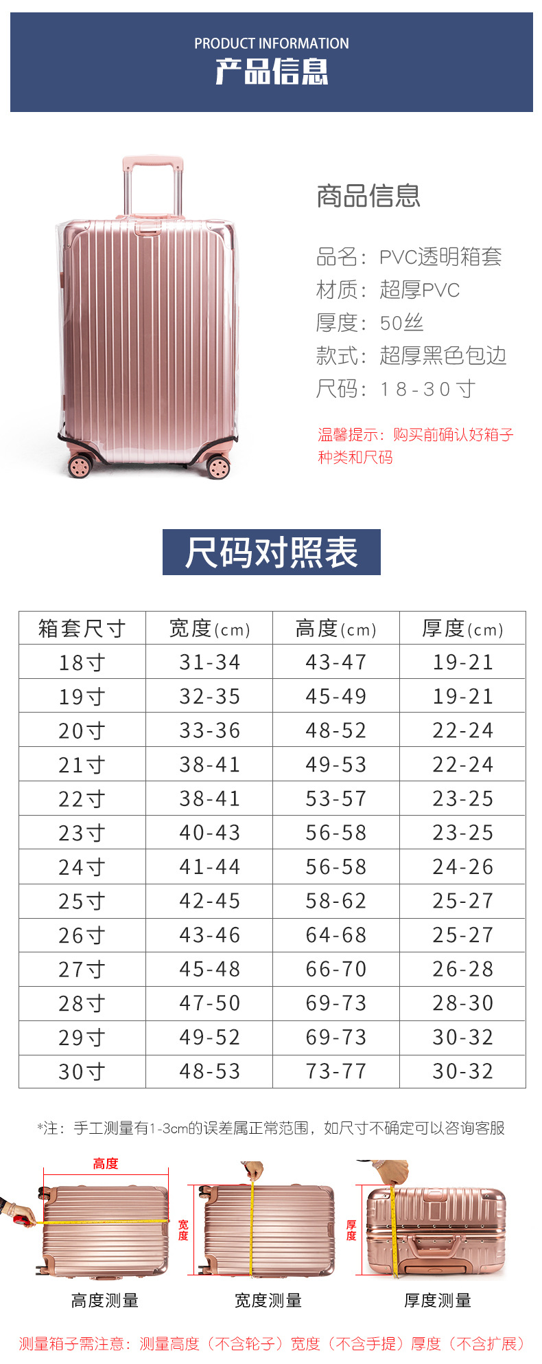 맞춤형 50수 가방 보호 커버 PVC 여행용 트롤리 가방 커버 방진 방수 커버 방수 보관