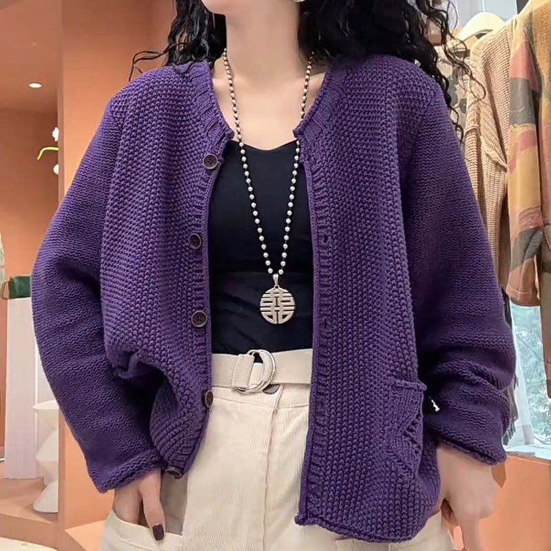크루 넥 긴 소매 니트 카디건 스웨터 재킷 여성 2025 봄 새로운 한국 느슨한 서양식 시대 감소 탑 트렌디스토어 가기