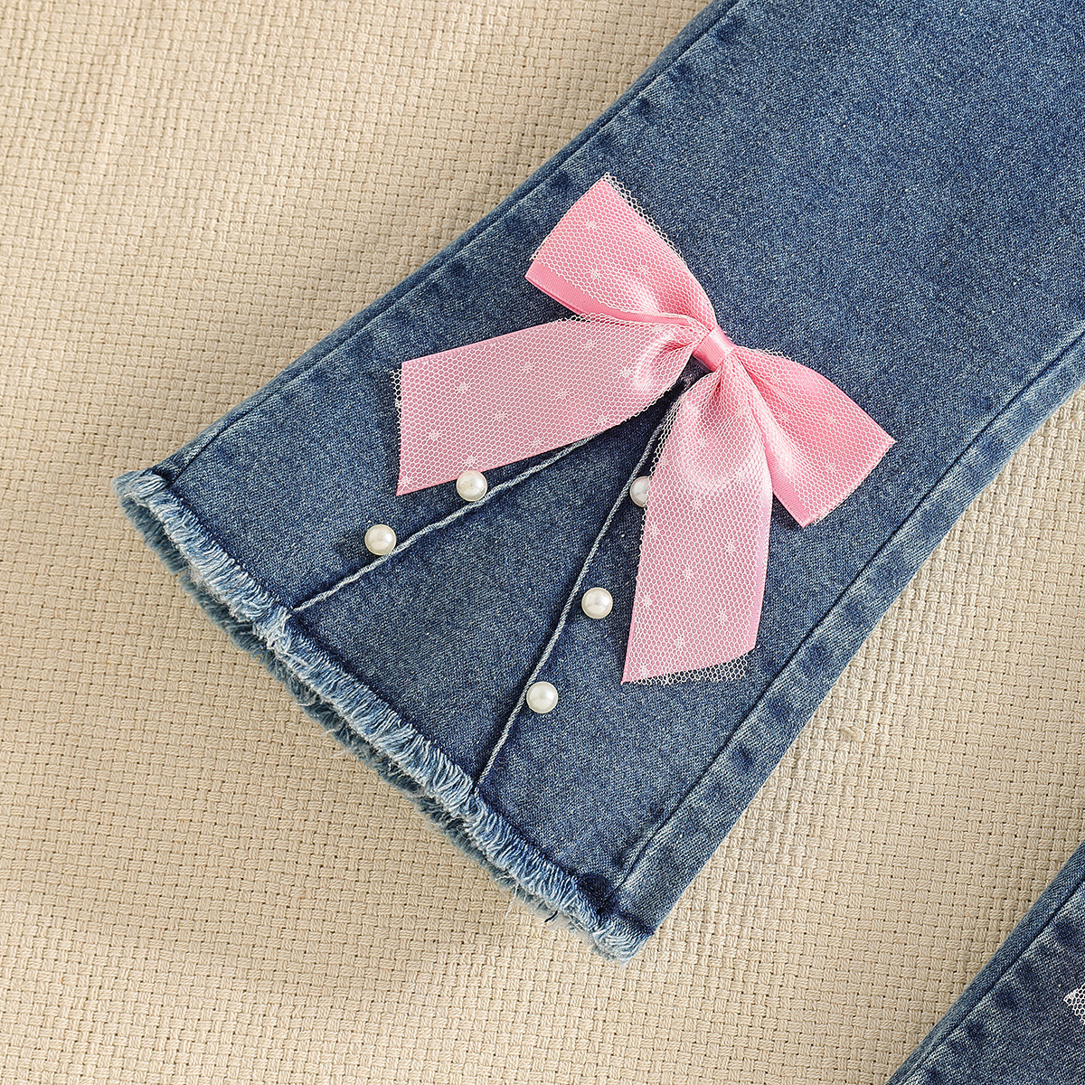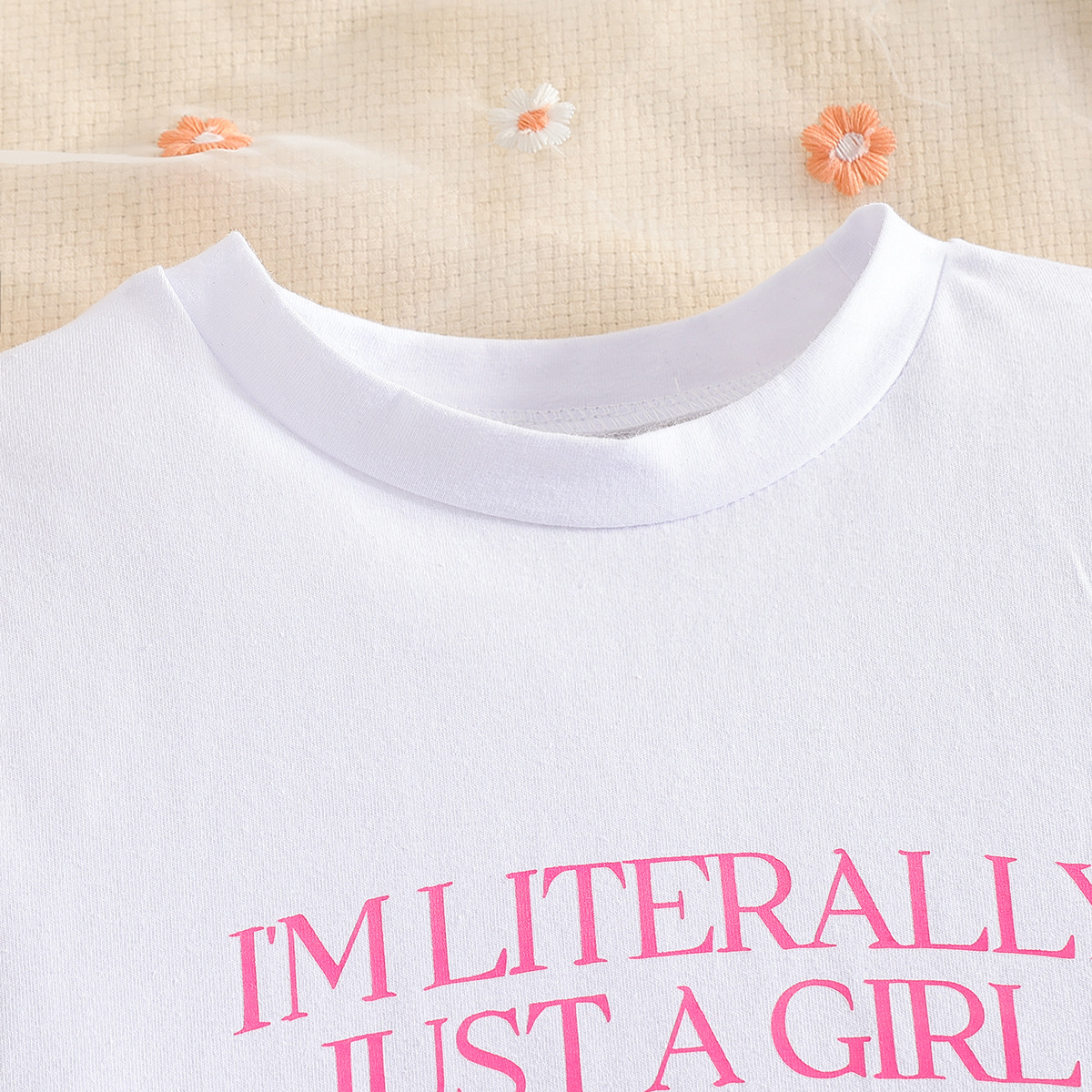여아 정장 여름 신작 반팔 레터 프린트 티셔츠 슬림 데님 바지 투피스 세트 서양식 아동복