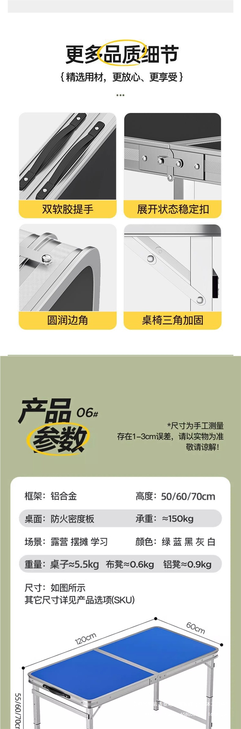 • [업그레이드 된 알루미늄 합금 사각 튜브] 120*60cm 파란색 + 알루미늄 의자 2개