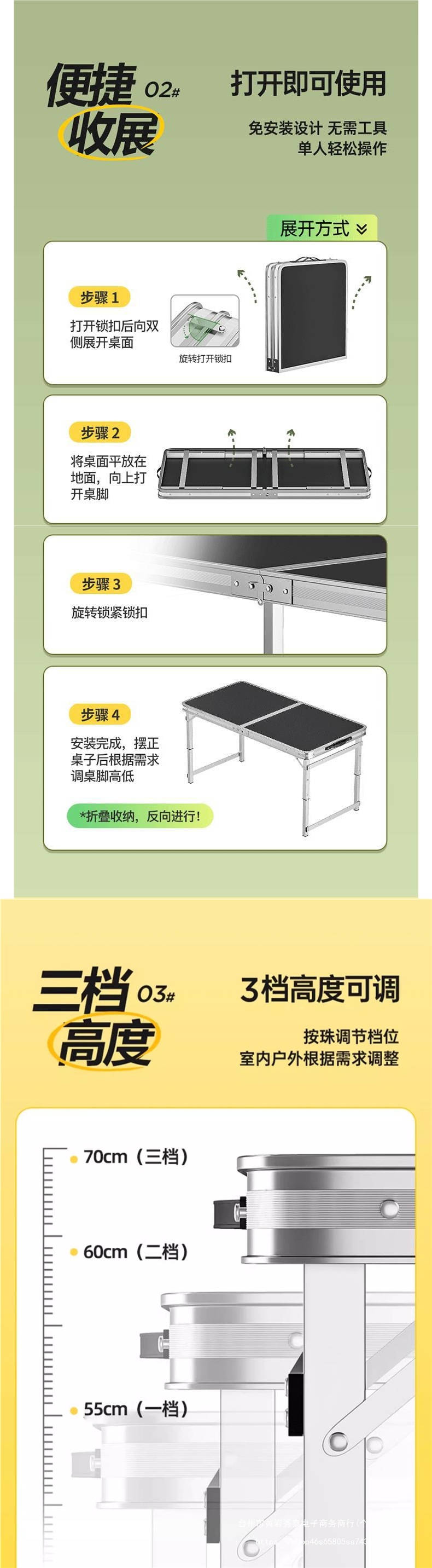 • [업그레이드 된 알루미늄 합금 사각 튜브] 120*60cm 녹색 + 알루미늄 의자 2개