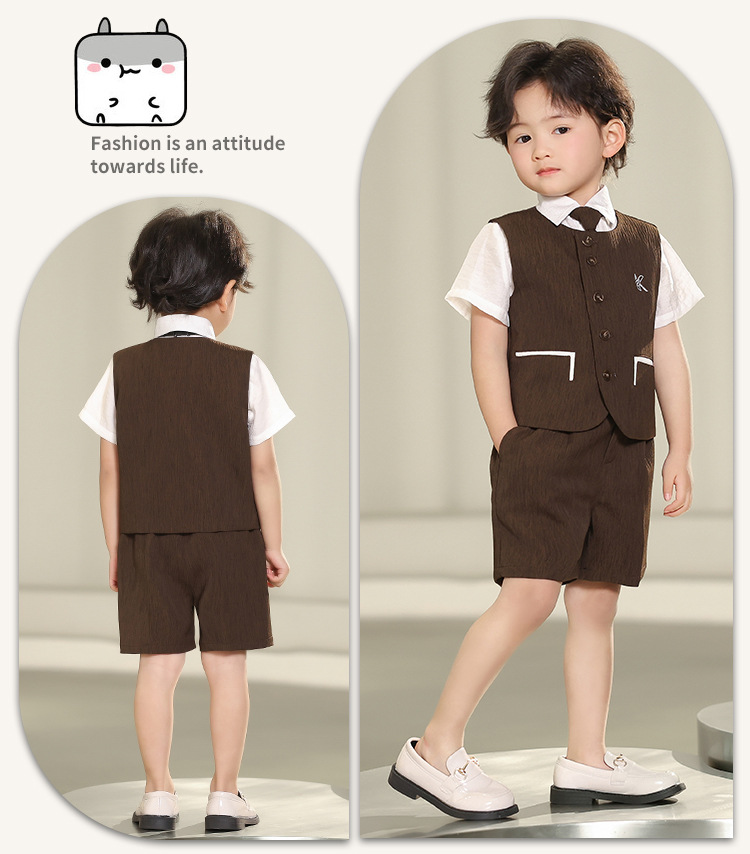 • [화이트 셔츠] 브라운 4종세트 (셔츠+조끼+반바지+넥타이)